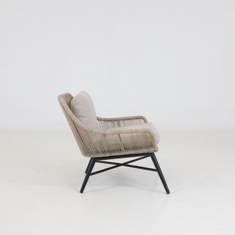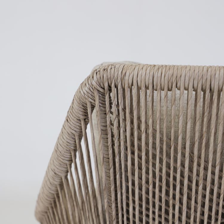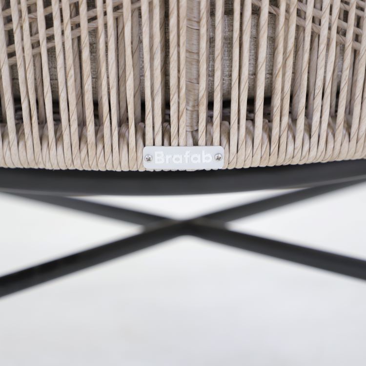 Fåtölj Pembroke är en stilren loungemöbel som kombinerar modern design med hög komfort för uteplats, altan eller trädgård. Serien kännetecknas av sina mjuka och rundade former samt den stilrena, twistade konstrottingen som ger möbeln ett exklusivt och inbjudande uttryck. Den stabila stommen i pulverlackerad aluminium gör möbeln både lätt och tålig, samtidigt som materialvalet gör den väderbeständig och enkel att underhålla. De generösa dynorna i slitstarkt olefintyg ger en bekväm sittupplevelse och är framtagna för att tåla utomhusbruk. Den harmoniska beige färgkombinationen skapar en lugn och naturlig känsla som passar i de flesta utemiljöer.