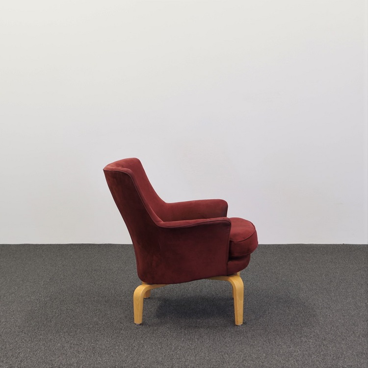 Osäker på tygets kulör men gillar fåtöljens formspråk? Vi är behjälpliga med tapetsering, skicka ett mail till [email protected] för offert!