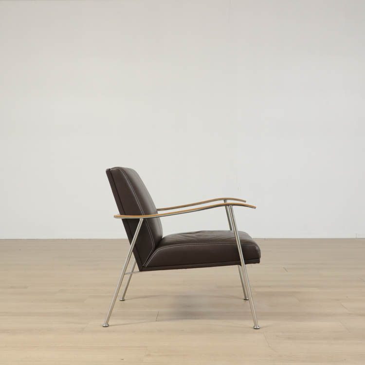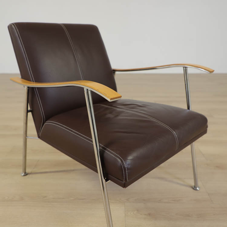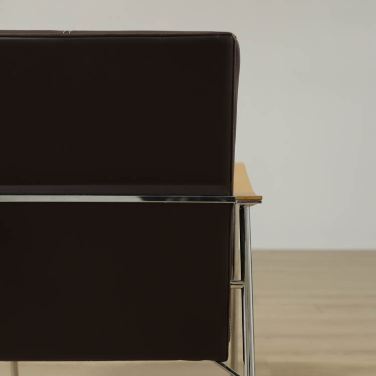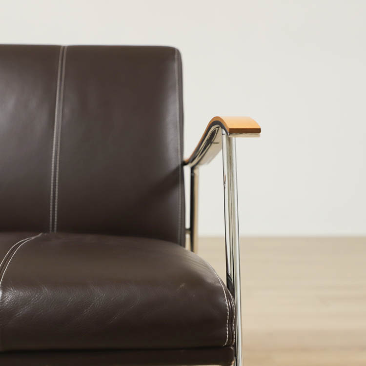 Sahara är en elegant och tidlös fåtölj formgiven av Gunilla Allard för Lammhults. Med en design som förenar skandinavisk enkelhet och sofistikerad komfort, passar den lika bra i moderna som klassiska miljöer. Den kromade stålramen ger fåtöljen ett lätt men stabilt uttryck, medan de vackert formade armstöden i valnöt adderar en varm och naturlig kontrast. Den stoppade sitsen och ryggen är klädda i exklusivt brunt läder som åldras med karaktär och bara blir vackrare med tiden. Kombinationen av material skapar en inbjudande helhet där varje detalj är genomtänkt för att erbjuda både stil och komfort.