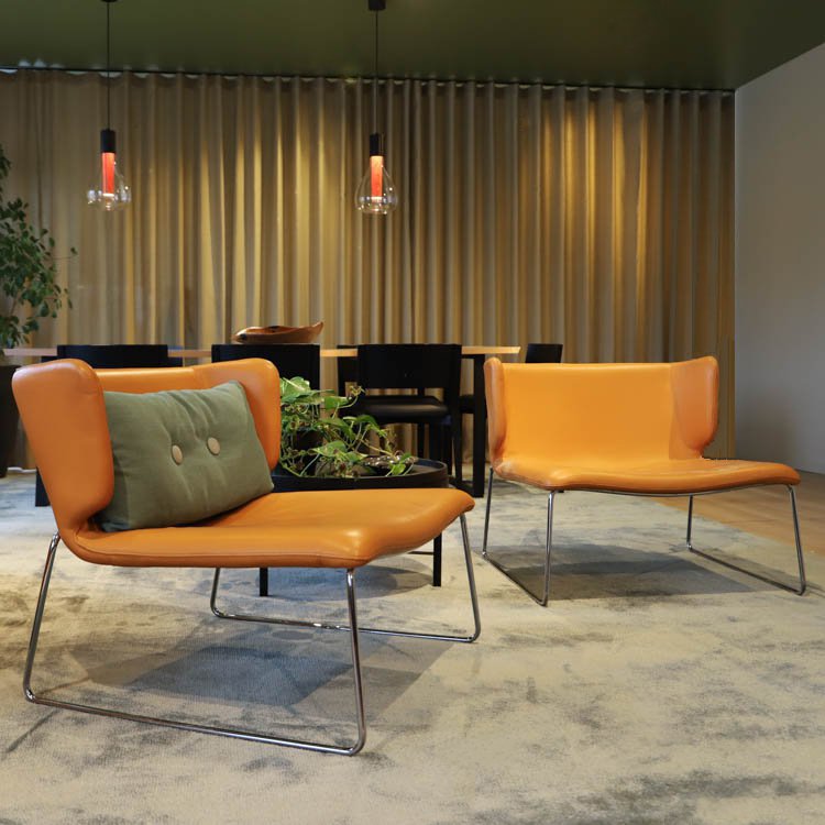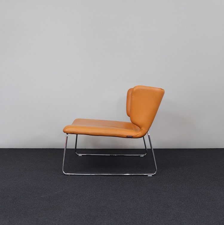 När du slår dig ner på loungemöbeln Wrapp känner du dig genast välkommen och bekväm tack vare den unika designen med ryggstödet som omsluter dig på sidorna. Det ger inte bara ett elegant uttryck, det ger dessutom extra komfort och erbjuder möjlighet att kunna variera sittställning. Wrapp är klädd i högkvalitativt läder med förkromat stativ.