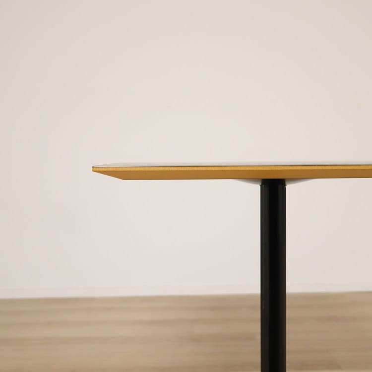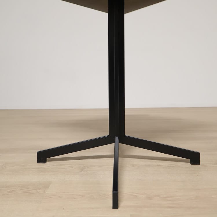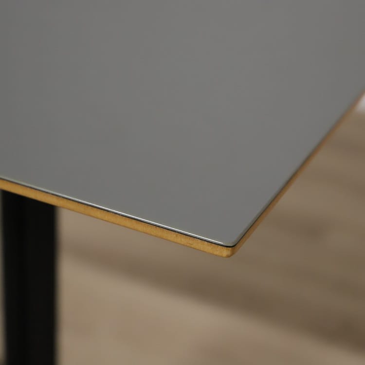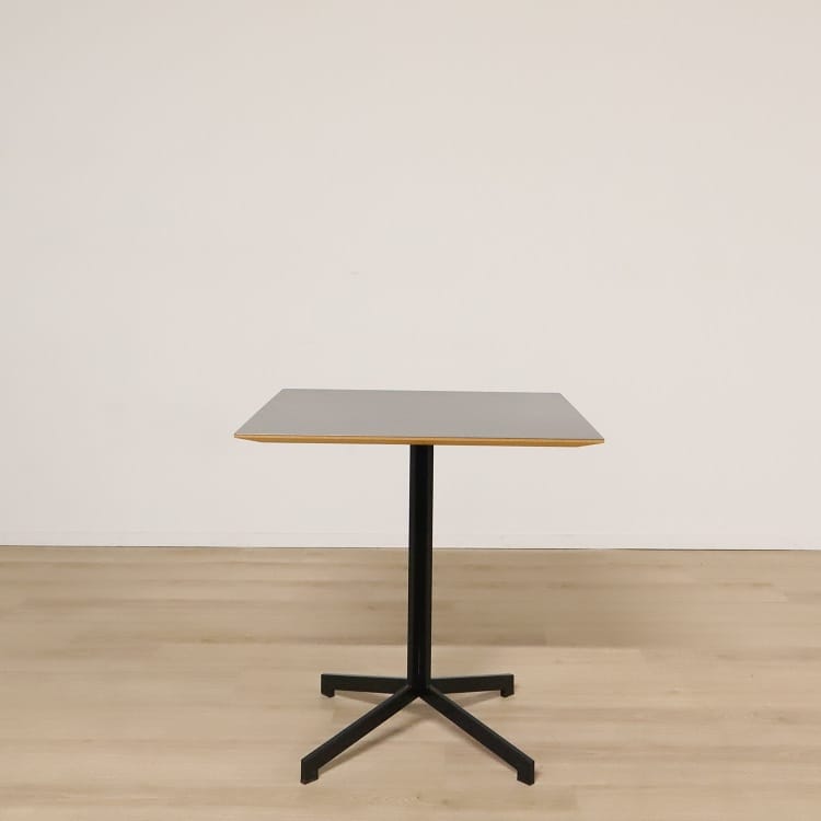 Lackad skiva i grått med kryssfot och svartlackerat stativ av stål gör denna möbel svår att tröttna på. Bordet är tåligt och står sig bra i offentliga utrymmen som i t.ex. restaurang- och cafémiljöer, loungen eller personalmatsalen.