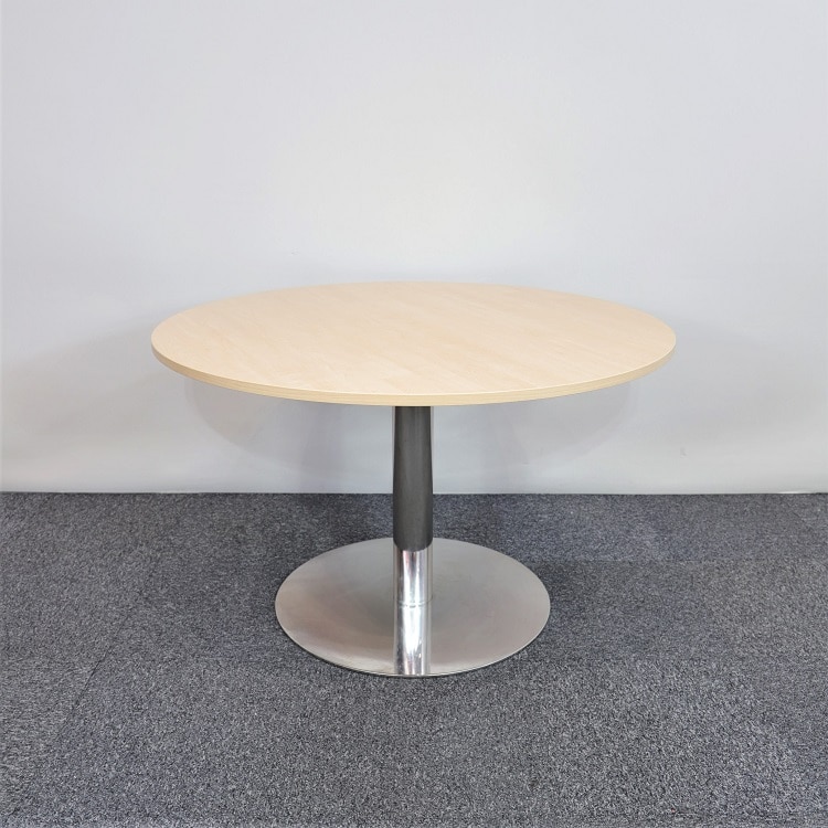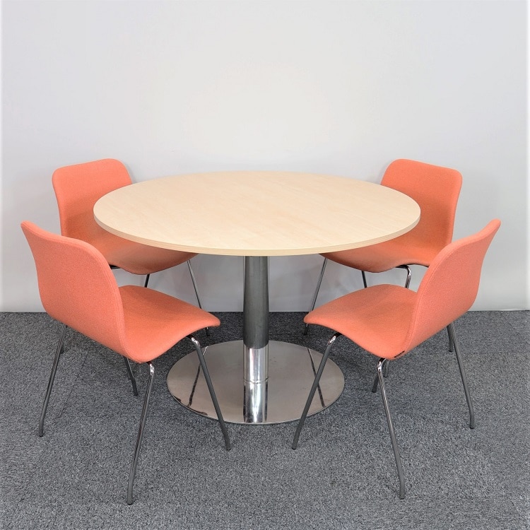 Ett enkelt bord med en fin skiva i askfaner och med plats för ca. 4 personer. Ger en varm och gemytlig utstrålning i personalmatsalen eller på caféet. Stativ i mitten med förkromat utseende erbjuder maximal stabilitet och samtidigt optimalt med plats för benen.