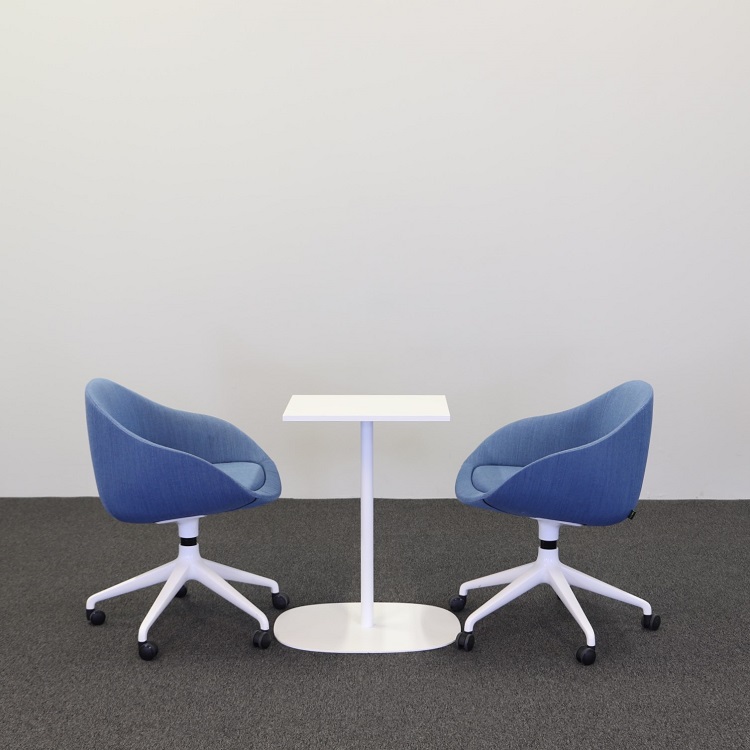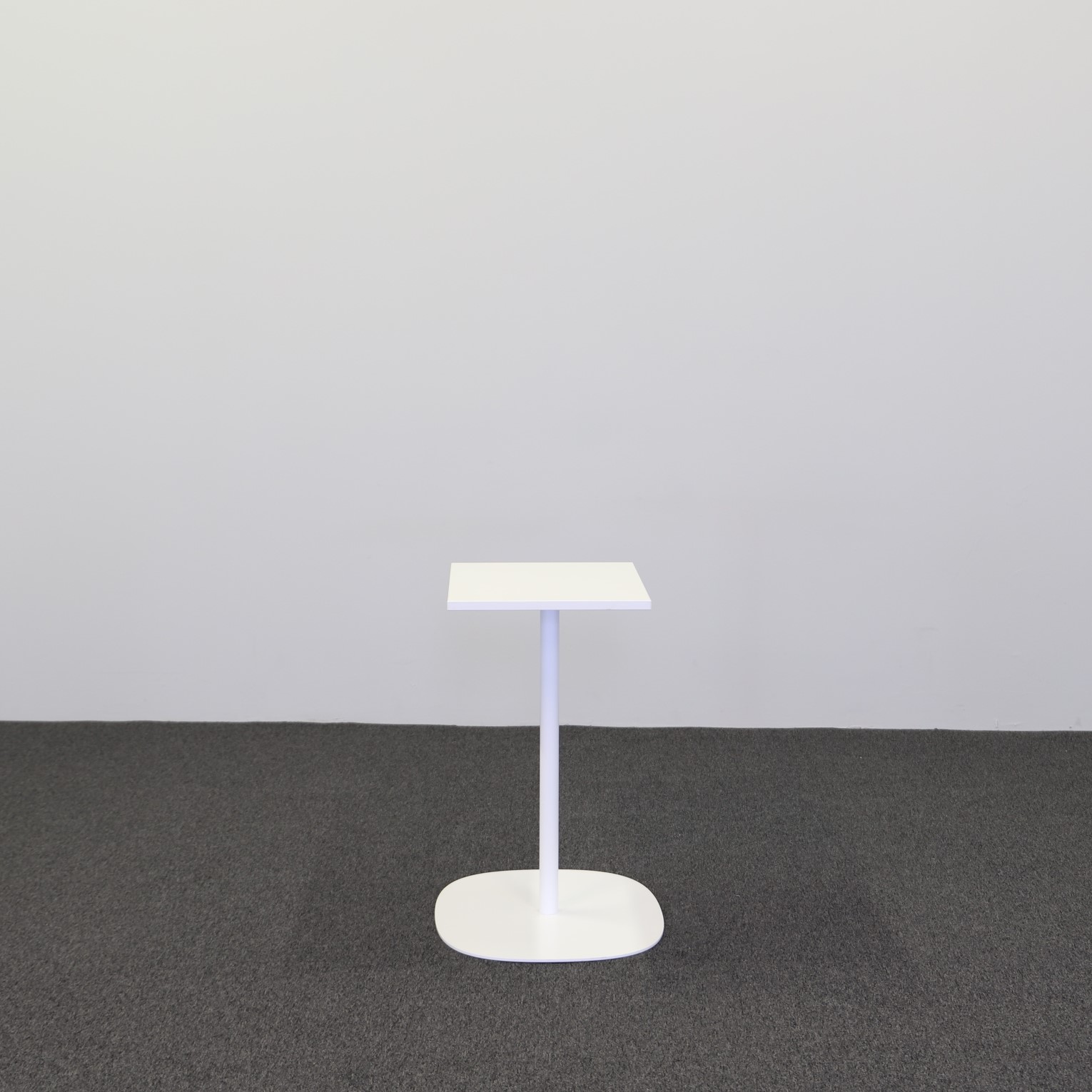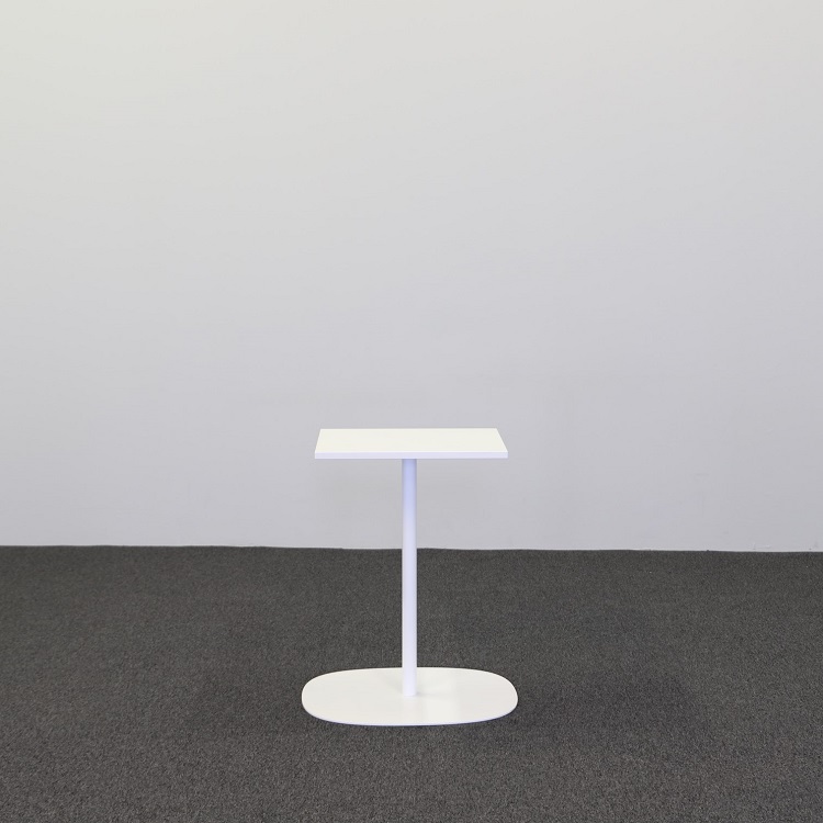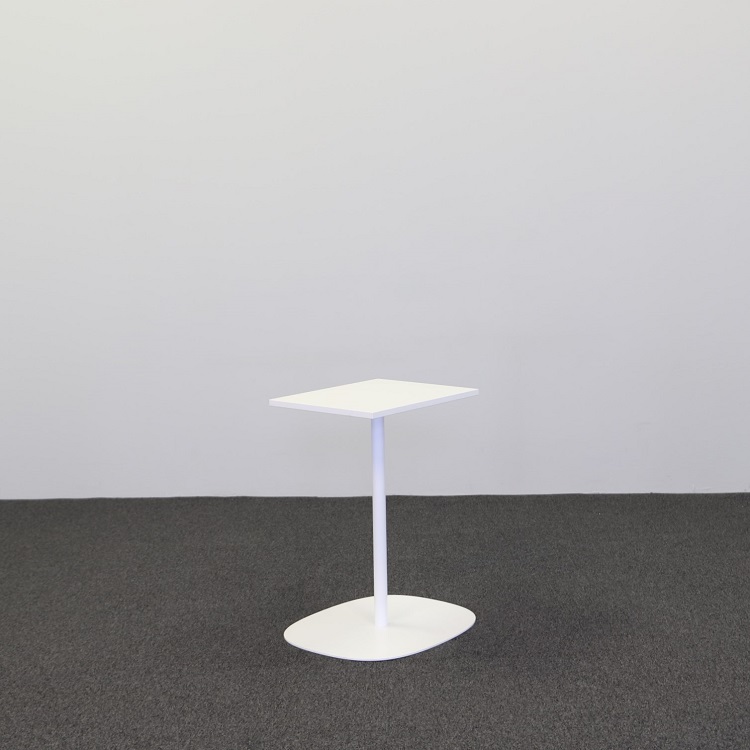 Låt oss introducera dig för detta vackra fikabord med en unik design som säkerligen imponerar på samtliga betraktare. Detta bord har en rund bas och en rektangulär bordsskiva i en vit, stilren finish.
