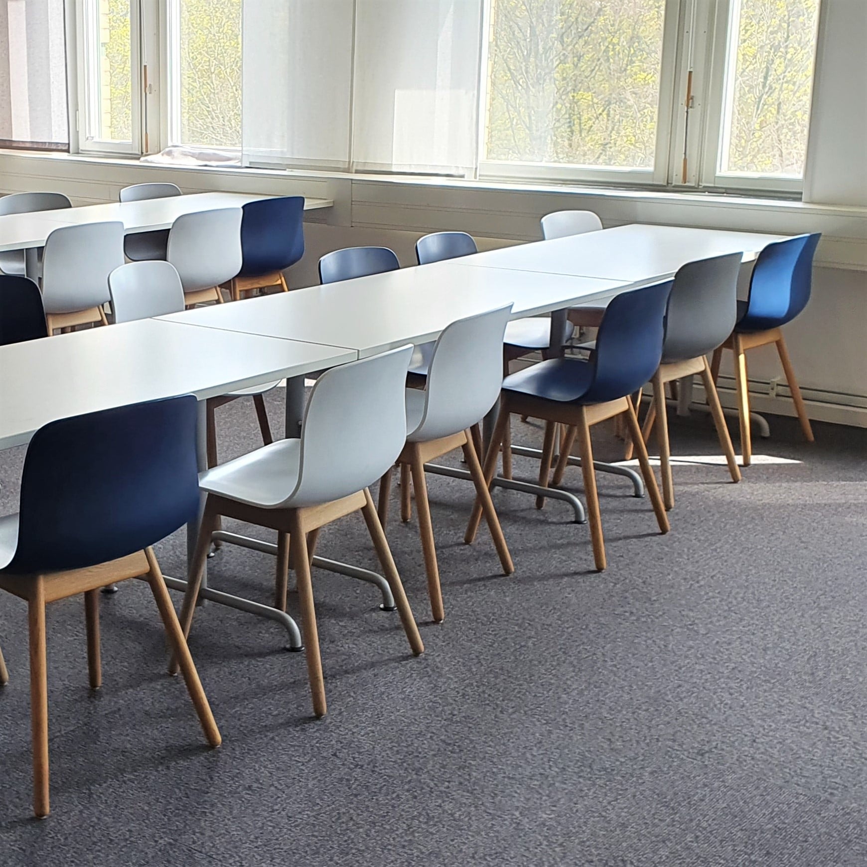 Modellen About a Chair kommer från det danska varumärket HAY och är designad av Hee Welling. Tanken bakom designen var att göra en stol med ovanligt enkel design som passar i princip var som helst. AAC 12 kännetecknas precis som de övriga stolarna i About a serien av sina eleganta och rena linjer. AAC 12 har en mjukt utformad slitstark sits i polypropylen och med ben i klarlackad ekfanér. Den passar perfekt i personalmatsalen då den är lätt att hålla ren, eller varför inte till konferensrummet. Finns även i blått och vitt och de tre färgerna passar fint med varandra.