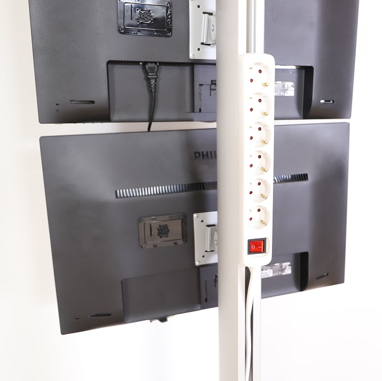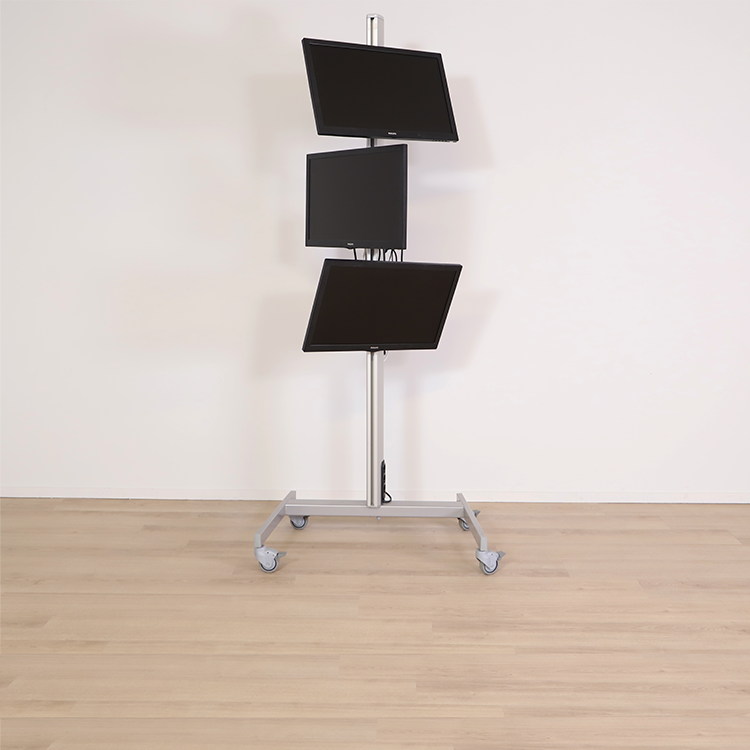 Detta golvstativ ger möjlighet till större smidighet genom att den är på hjul och därmed kan flyttas utan problem. Detta förbättrar mötet genom att alla kan tydligt se bilden samtidigt som man kan skjuta undan det när man är klar. Stativet är utrustat med eluttag så att man ladda exempelvis en laptop som kopplas till tv-apparaterna.