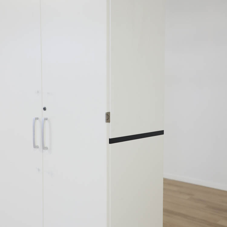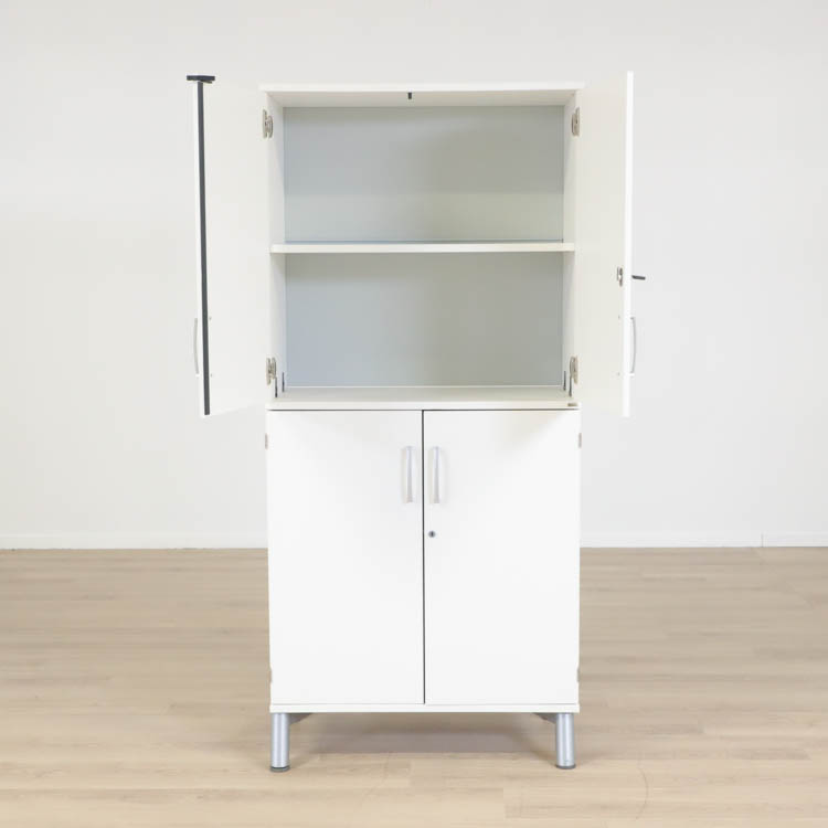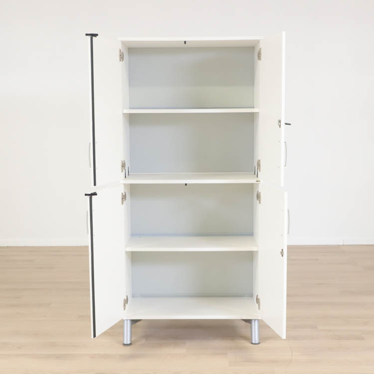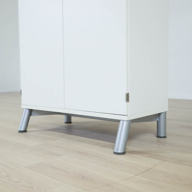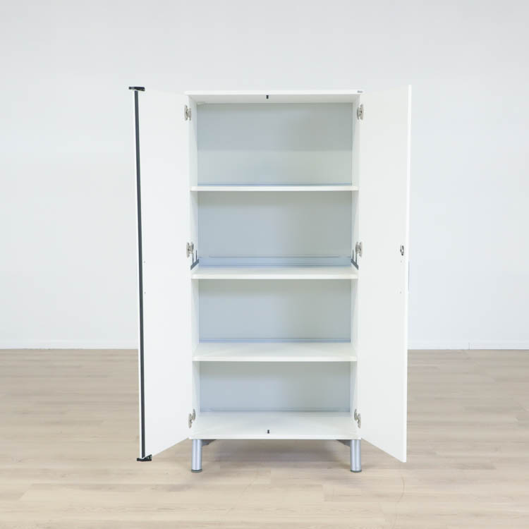 Det här specifika förvaringsskåpet är utrustat med flera hyllor inuti, vilket gör det idealiskt för att organisera och förvara diverse föremål, från böcker och mappar till personliga tillhörigheter.