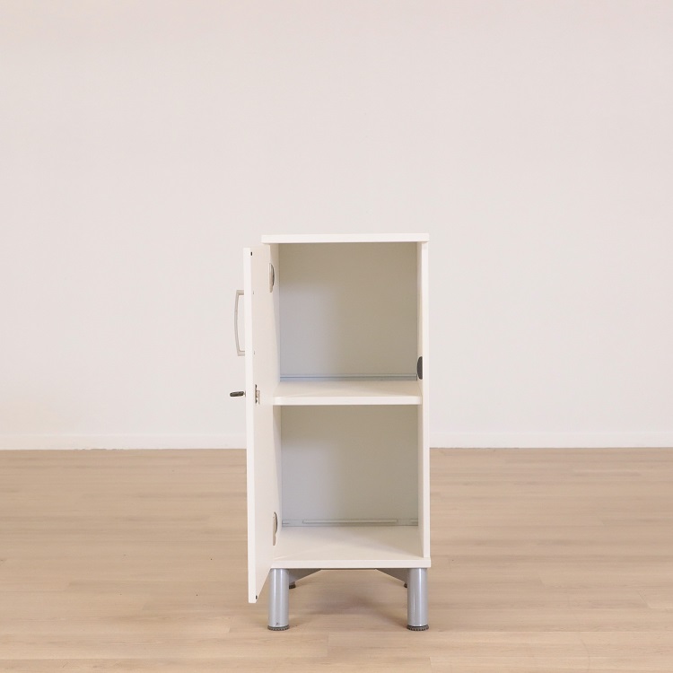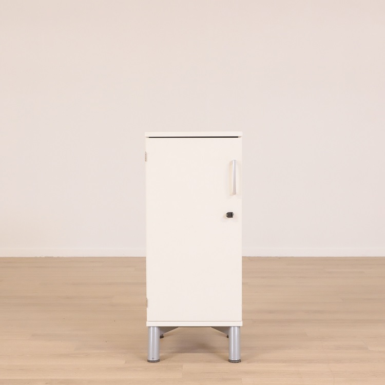 Förvaringsskåp är ett måste på alla kontor! Detta stilrena och nätta skåp i vitt är det perfekta komplementet för det lilla kontoret. Rymmer pärmar och andra kontorstillbehör som du inte önskar se. Då skåpet har lås finns här också möjlighet att förvara viktiga dokument eller saker som ej ska bör vara tillgängliga för andra. Handtagen till detta skåp är metall i silver som med benen i samma kulör ger en enhetlig och varm känsla. Skåpets mindre storlek gör den flexibel och passar då även bra för hemmakontoret.