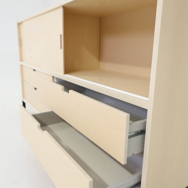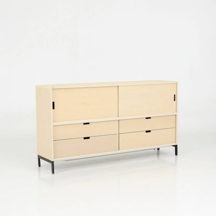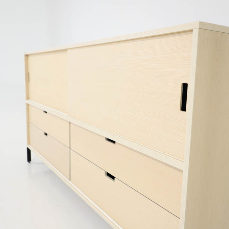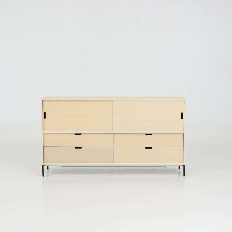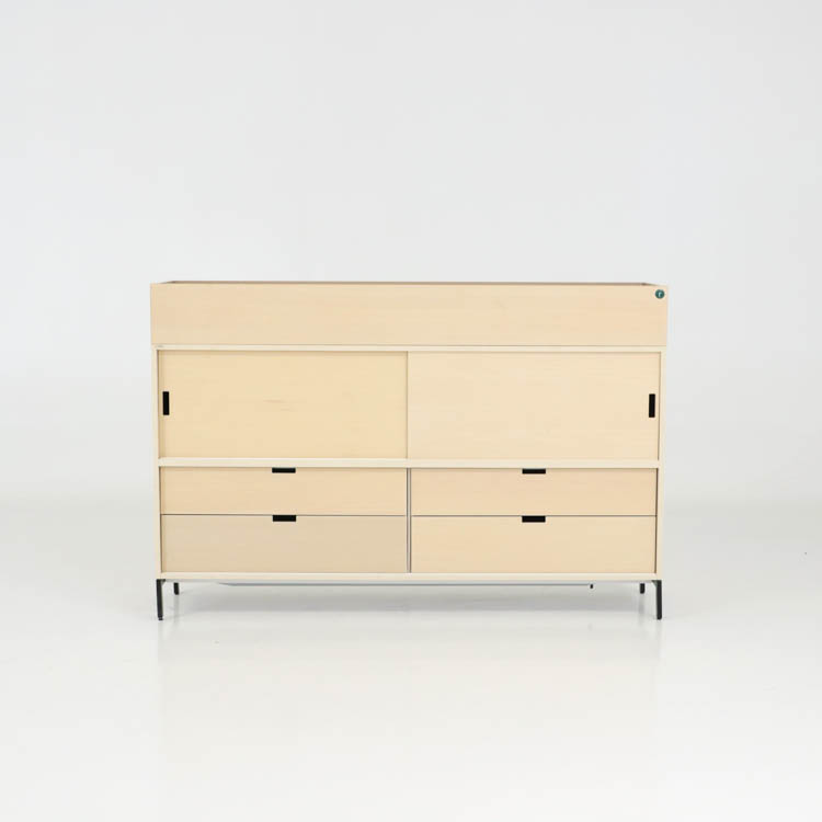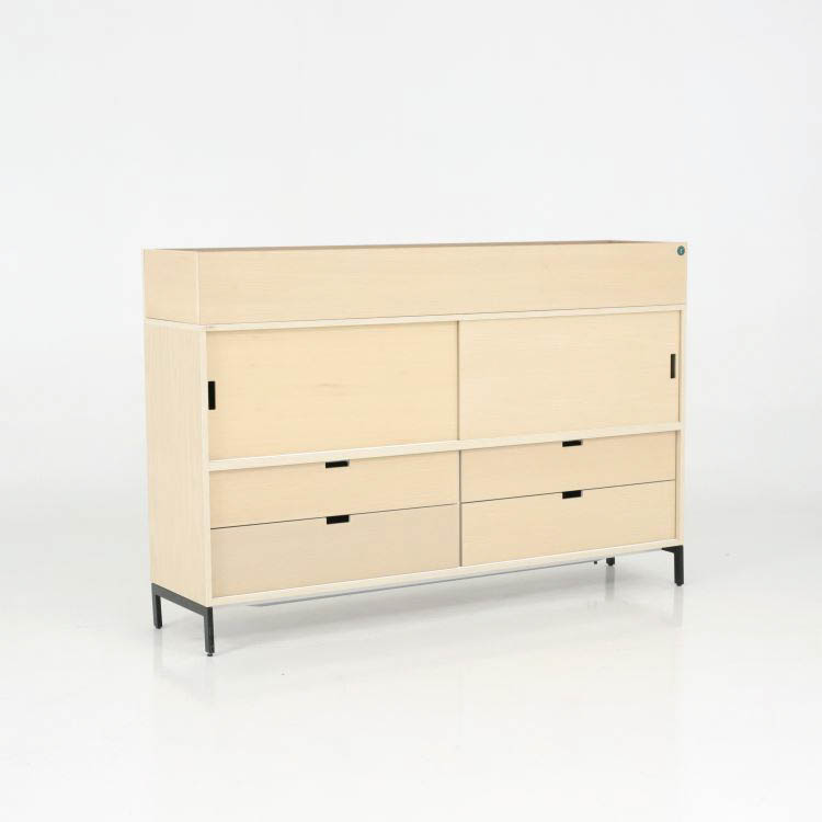 Nests förvaringsskåp kommer i kombination av både skjutdörrsförvaring och lådor för att täcka så många förvaringsområden som möjligt i en och samma möbel. Kombinera skåpet med den smarta förvaringstillsatsen för att göra denna möbel både högre och ger utrymme för ytterligare ett användningsområde. Tillsatsen har många användningsområden exempelvis som broschyrställ, avsats för växter eller belysning.