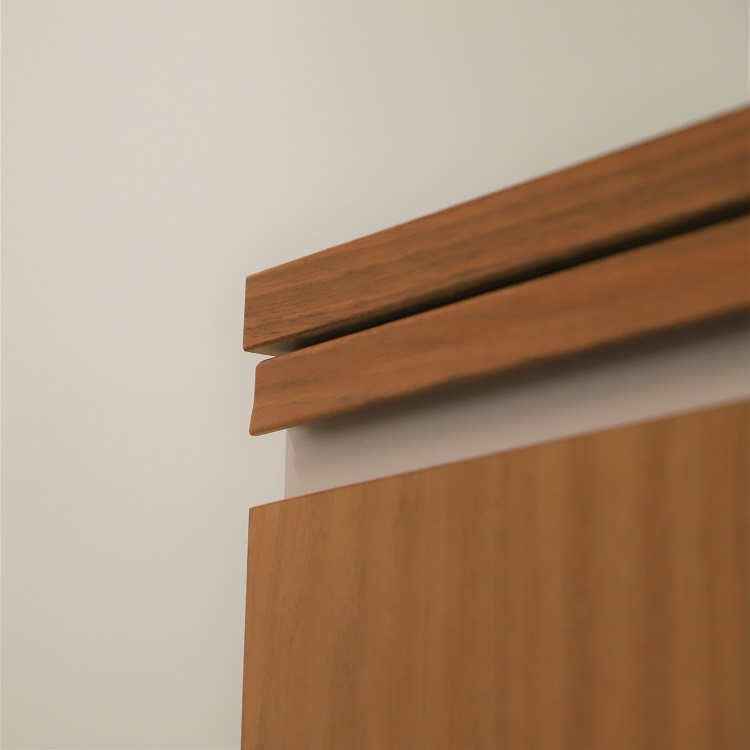 Den vita kulören bryts av med skåpsluckor i valnöt som även följs upp i detaljer på skåpet. Att blanda olika texturer och färgsättningar kan skapa ett mer dynamiskt intryck vilket till följd ger en välkomnande och varm miljö att kliva in i.