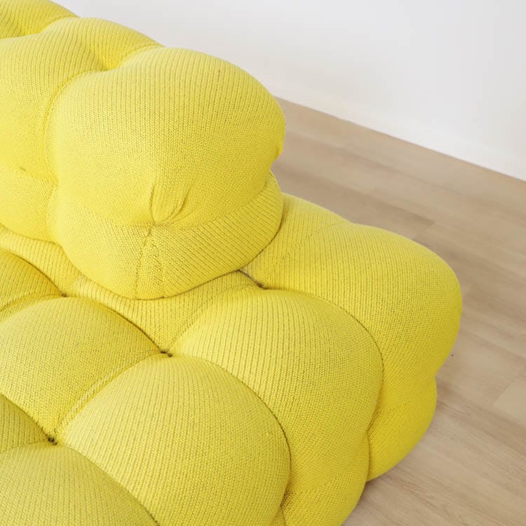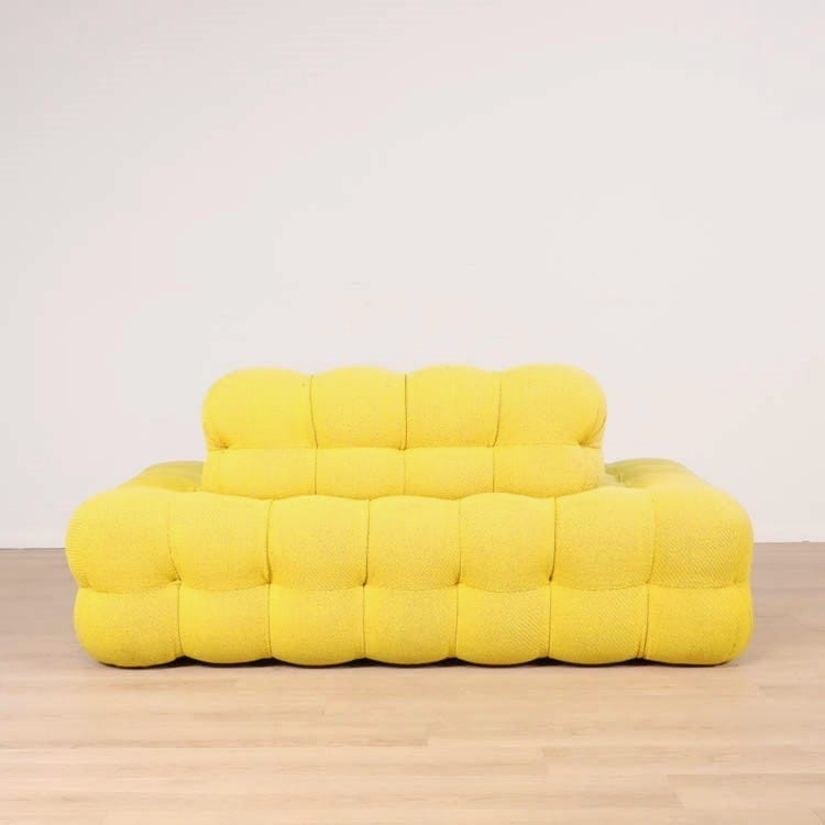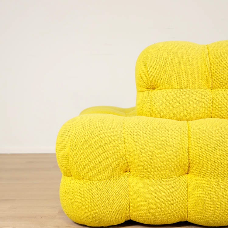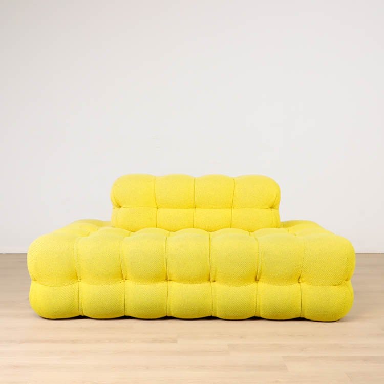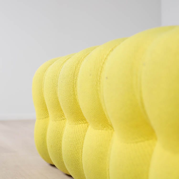 Upyrs finns i sju storleksvariationer – tre av dem är soffor, två puffar och två schäslonger. Tyget kommer från Kvadrat och detta utförande kommer i en solgul färg.