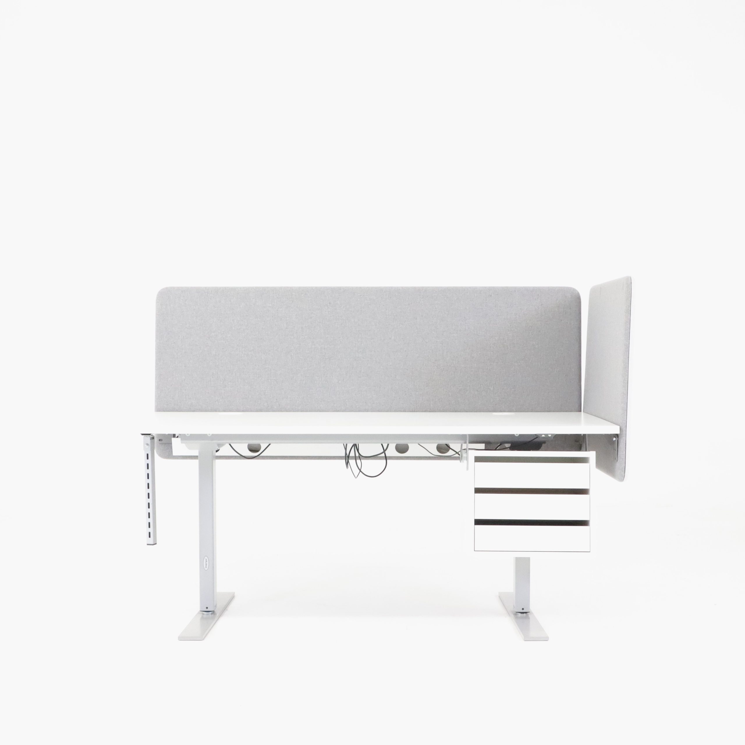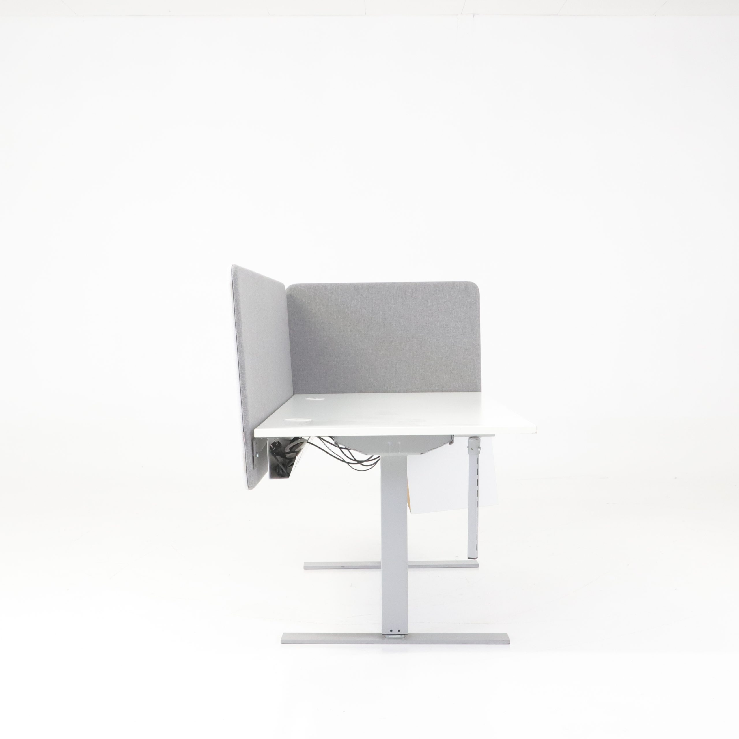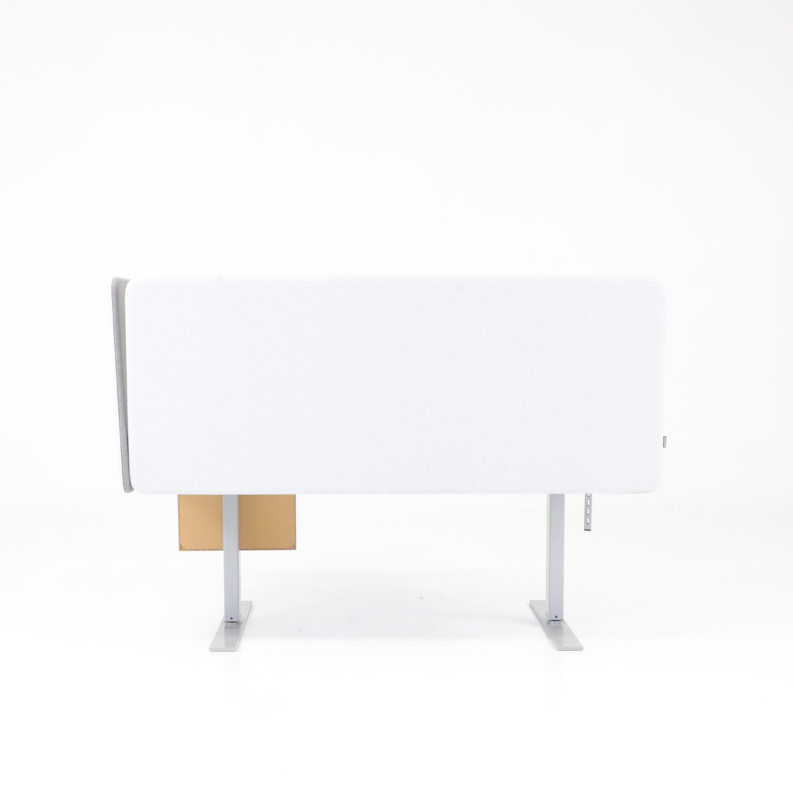 De ljudabsorberande och inramande bordsskärmarna ifrån Abstracta gör att arbetsplatsen kan placeras såväl fristående som i sammanhängande öar. Dessa kommer med en mellangrå insida och en ljusgrå utsida, vilket ger en mjuk kontrast.