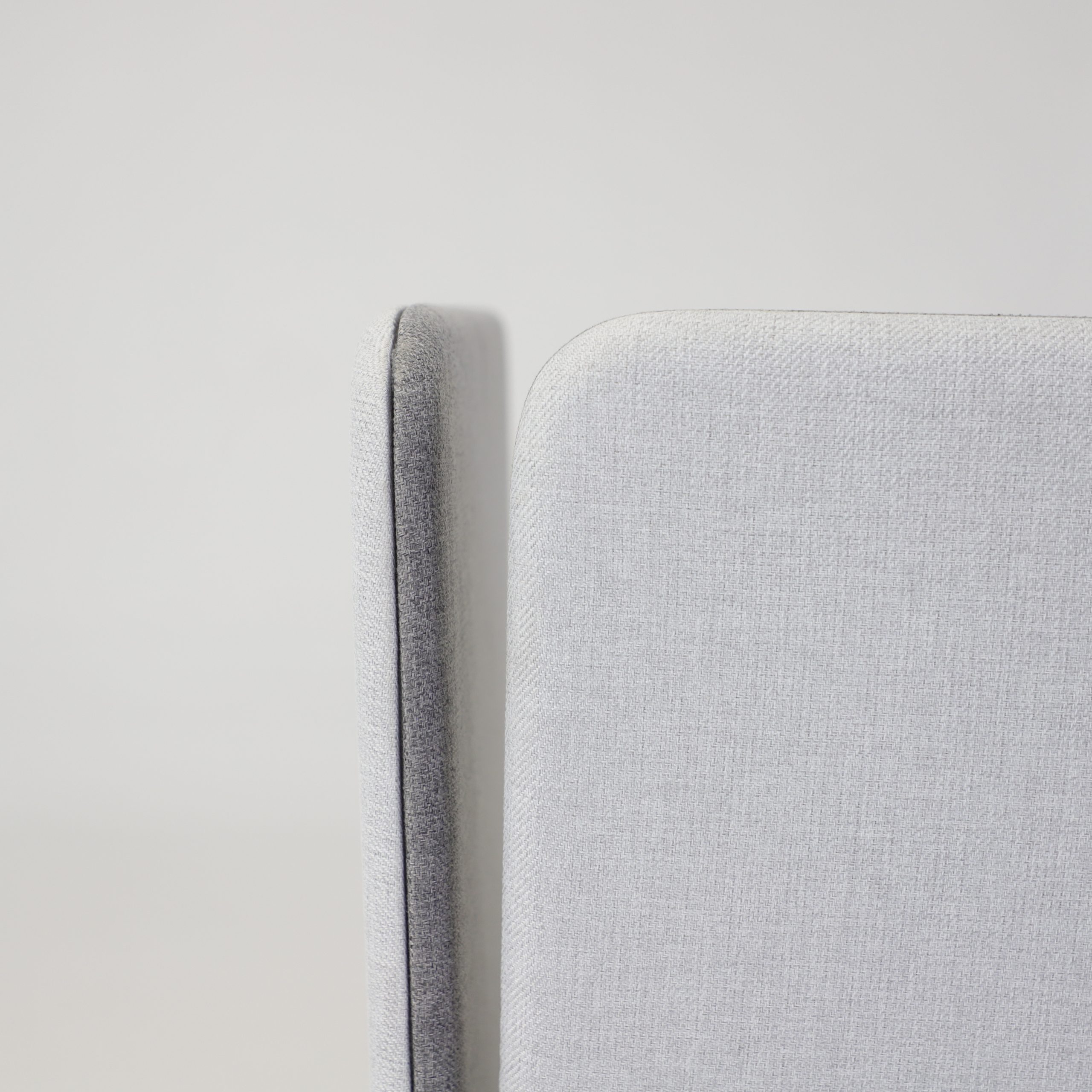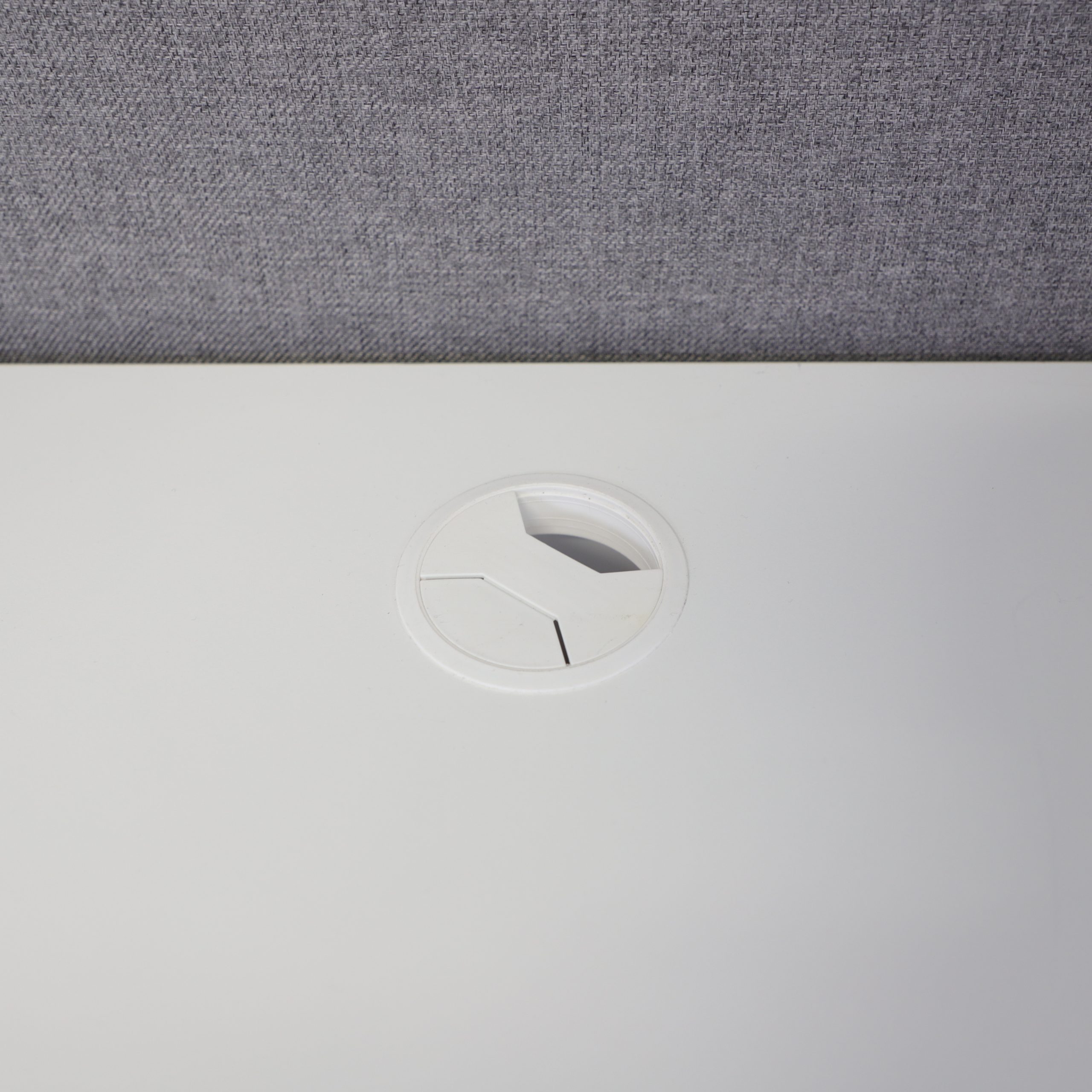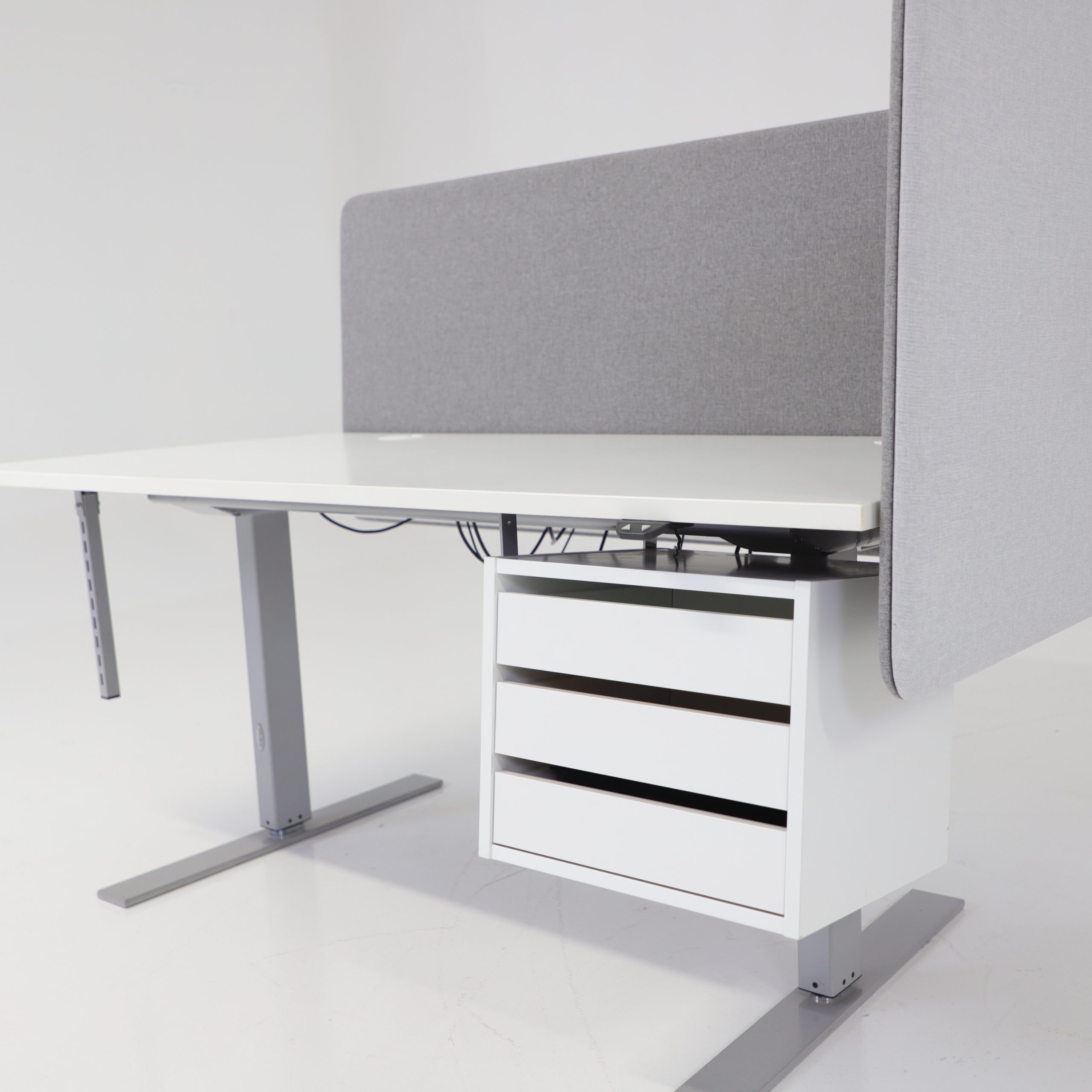 De ljudabsorberande och inramande bordsskärmarna ifrån Abstracta gör att arbetsplatsen kan placeras såväl fristående som i sammanhängande öar. Dessa kommer med en mellangrå insida och en ljusgrå utsida, vilket ger en mjuk kontrast.