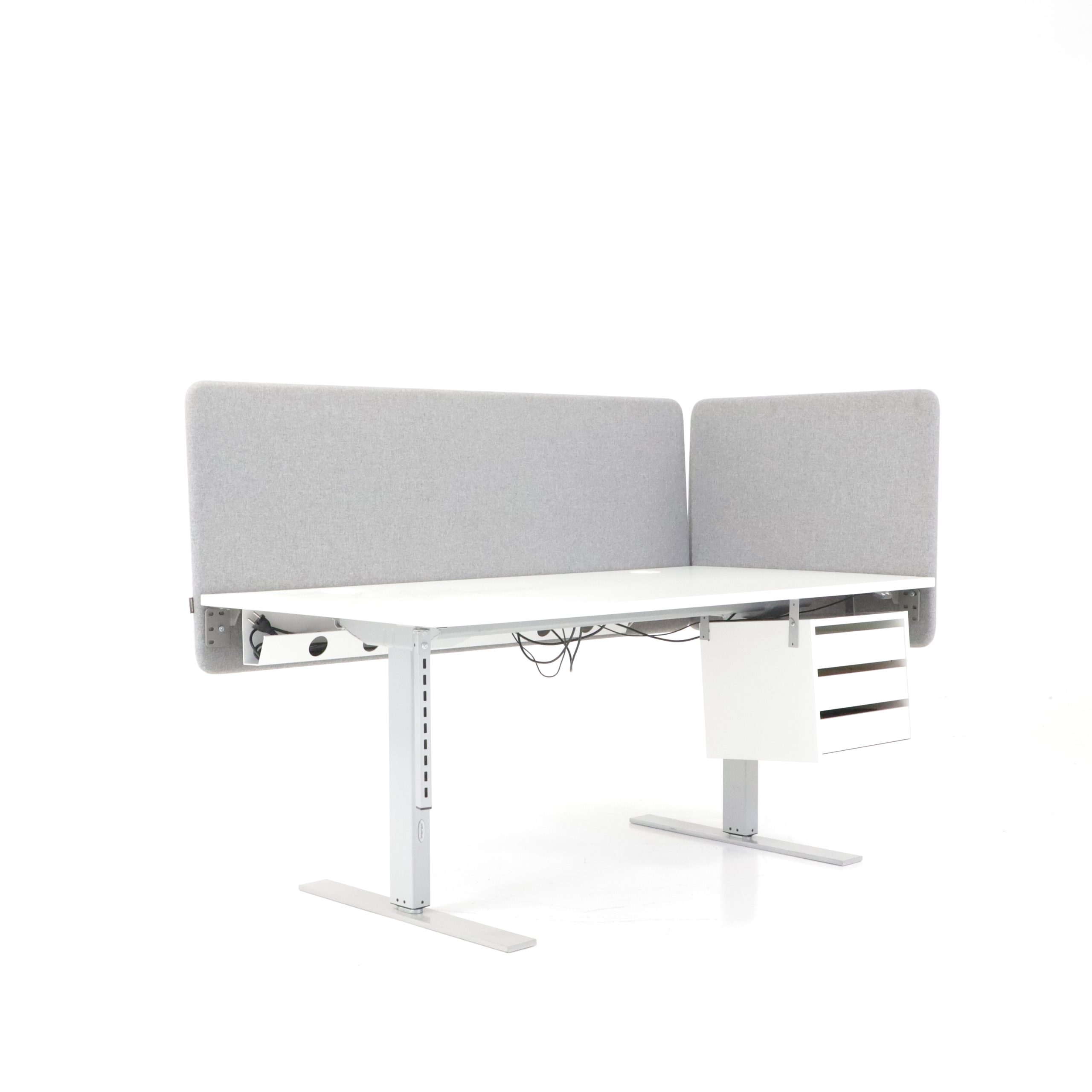 I denna kompletta arbetsplats får du allt du behöver för en bekväm arbetsdag bakom skärmen. En kontorsplats som avskärmar, inbjuder till en flexibel arbetsställning samt ger utrymme för lättare förvaring nära till hands. Arbetsplatsen består av skrivbord, med bordsskärm för en lång- och kortsida, hängande skrivbordsförvaring samt ett stativ för papperskorgar och andra tillbehör.