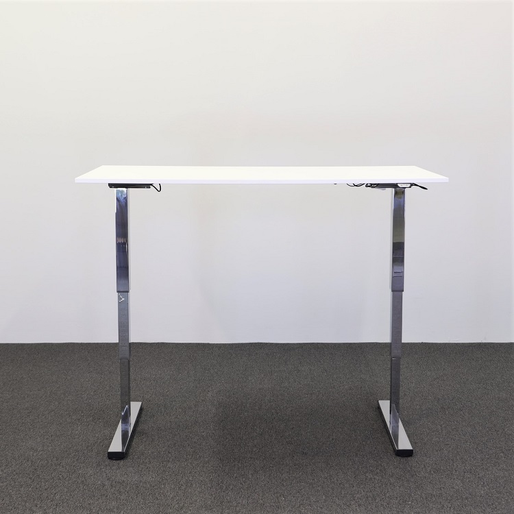 Passa på att fynda exklusiva höj- och sänkbara skrivbord av hög kvalitet från välkända varumärken. Skrivborden kommer med vit bordsskiva och kromat stativ. Bordens höjdreglage gör det enkelt att justera mellan sittande och stående arbete under dagen vilket är ett hälsosamt val för kontorsarbete.