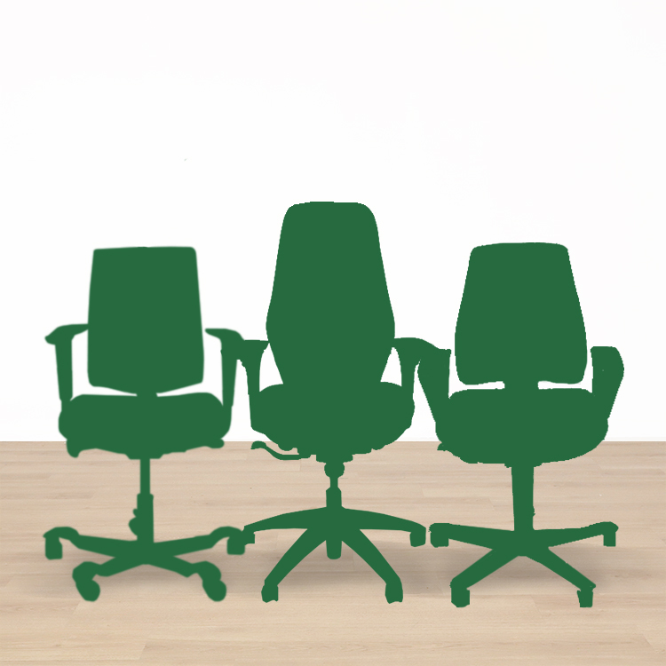 Kontorsstolar från olika märken och modeller, med armstöd och utan nackstöd.