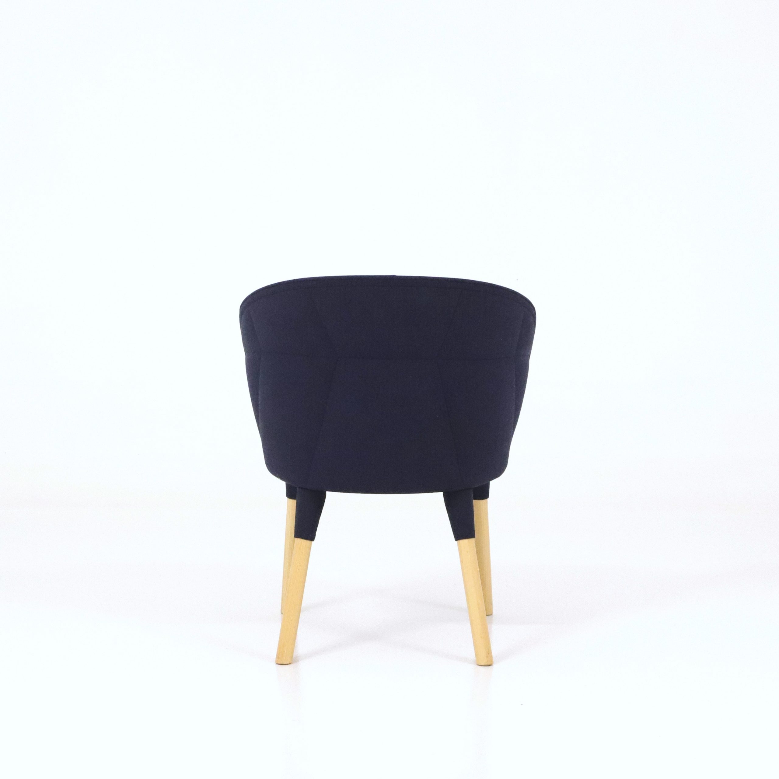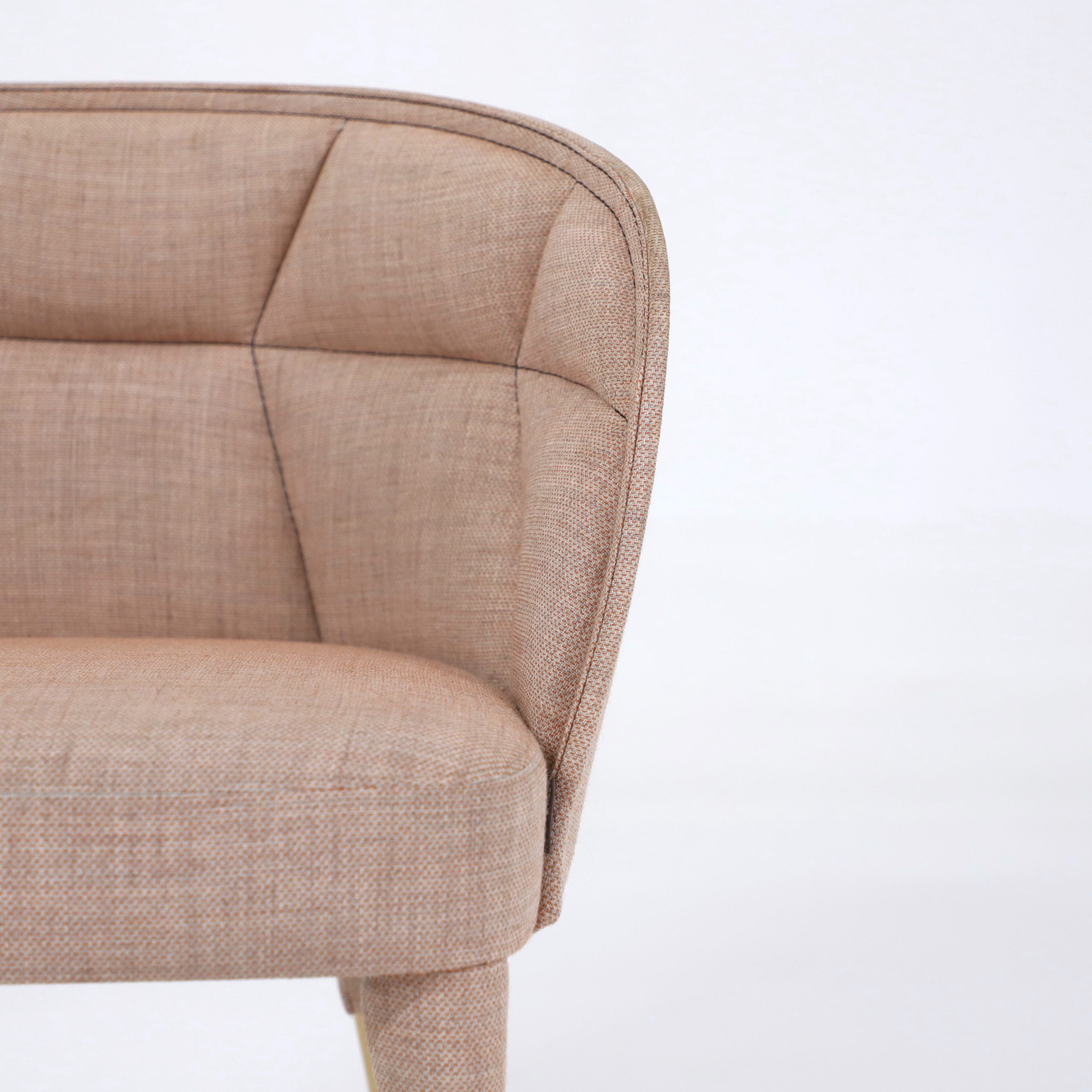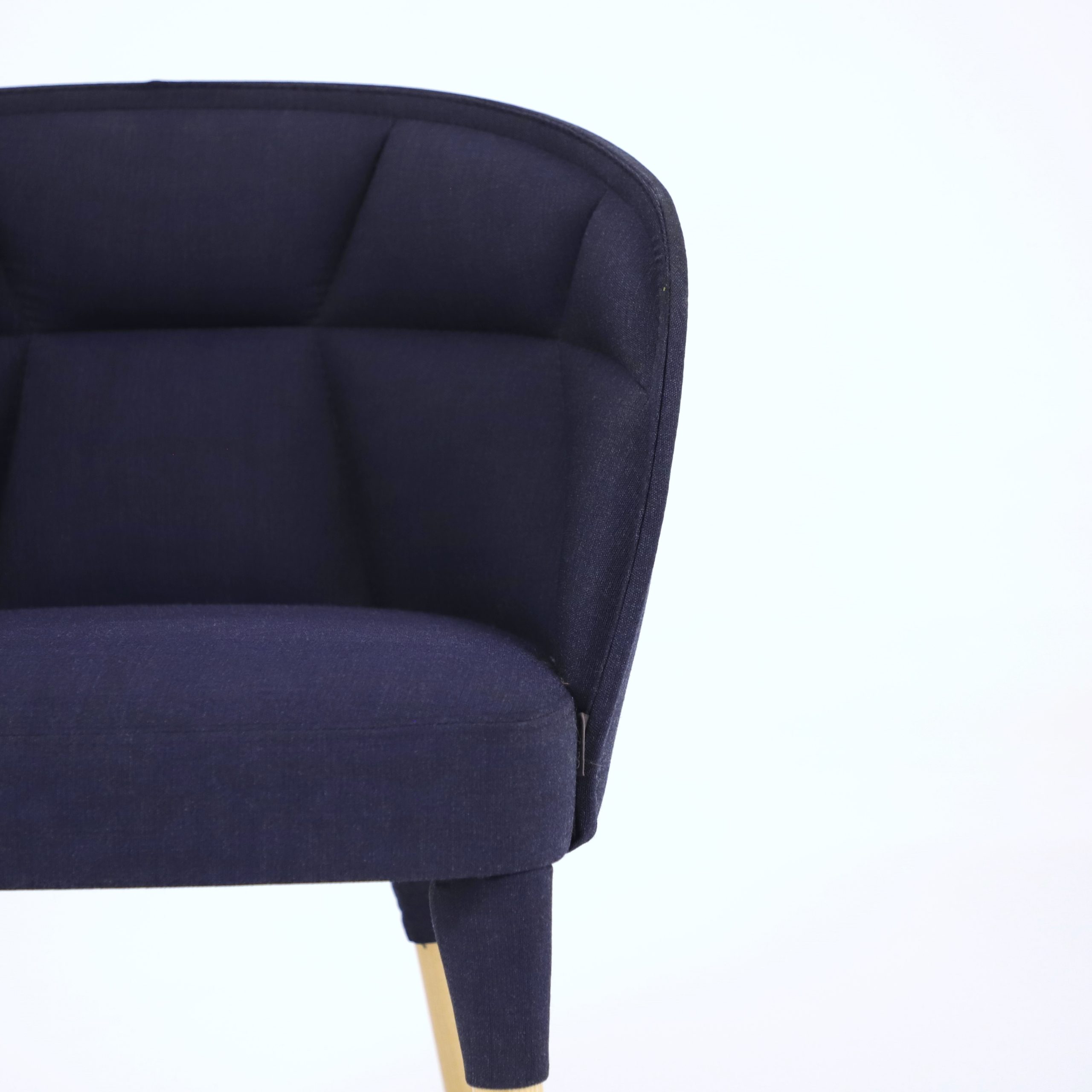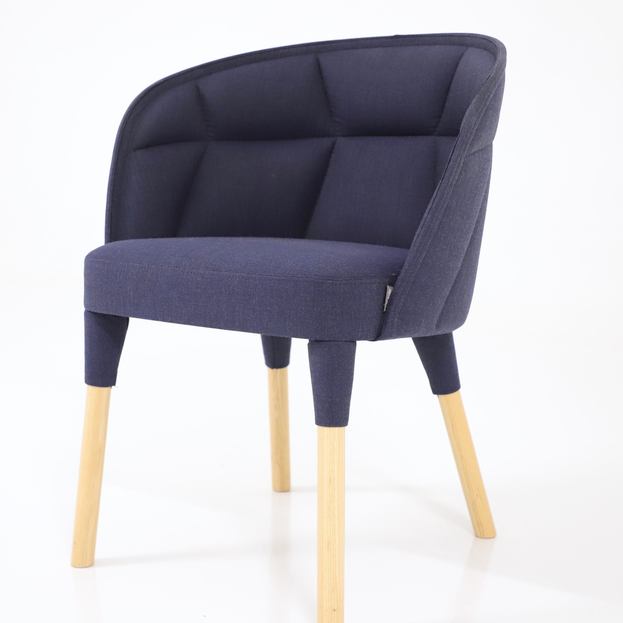 Med sin kombination av klädd komfort och sitt noggranna hantverk är denna karmstol ett stilrent val för den som söker design som håller över tid.