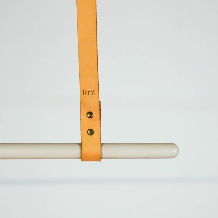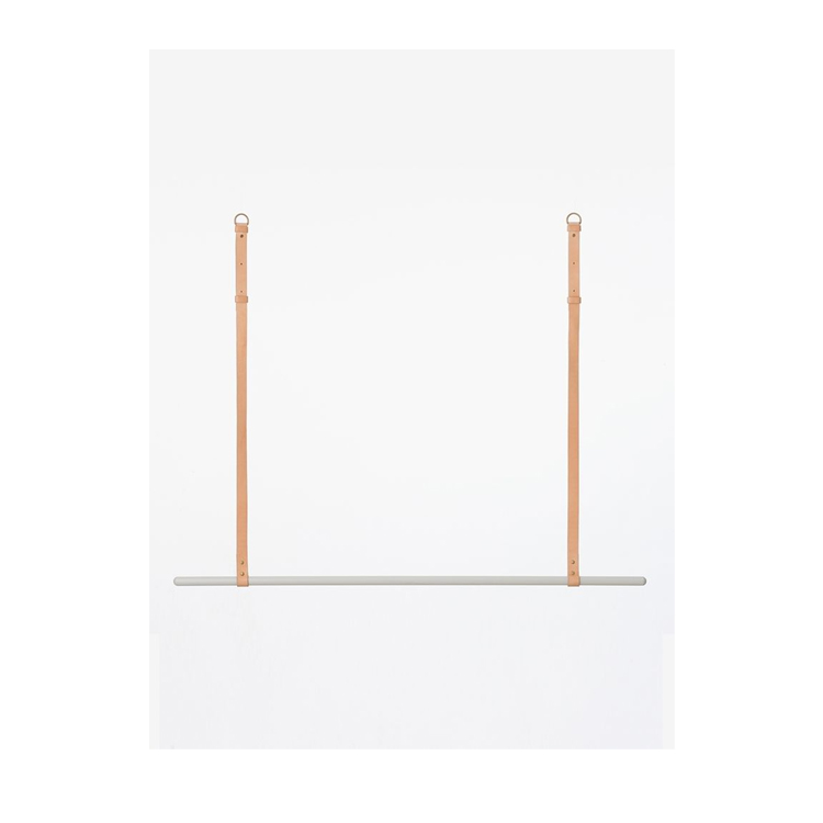 Tänk dig en garderob som liknar den traditionella öppna planlösningen mellan kök och vardagsrum, fast i ditt sovrum och klädkammare. En plats där dina kläder får träda fram på ett elegant sätt, hängandes på denna stilfulla klädstång från Ferm Living. Stången har en soft grå kulör tillverkad i stål och banden i brunt läder, en helt perfekt kombination!