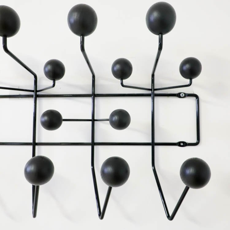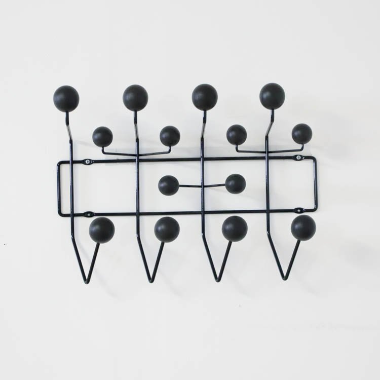 Hang it All är en ikonisk klädhängare designad av Charles och Ray Eames för Vitra, först lanserad 1953. Med sina runda träkulor och ett ramverk av pulverlackerad ståltråd erbjuder den en lekfull och funktionell lösning för förvaring. Ursprungligen tänkt för barn, uppmuntrar designen användaren att hänga upp sina saker på ett roligt sätt. Den fungerar lika väl i vuxna miljöer, som entréer eller kontor, och kan användas som ett alternativ till vanliga klädkrokar.