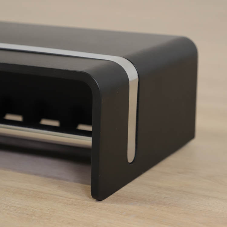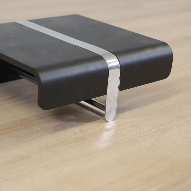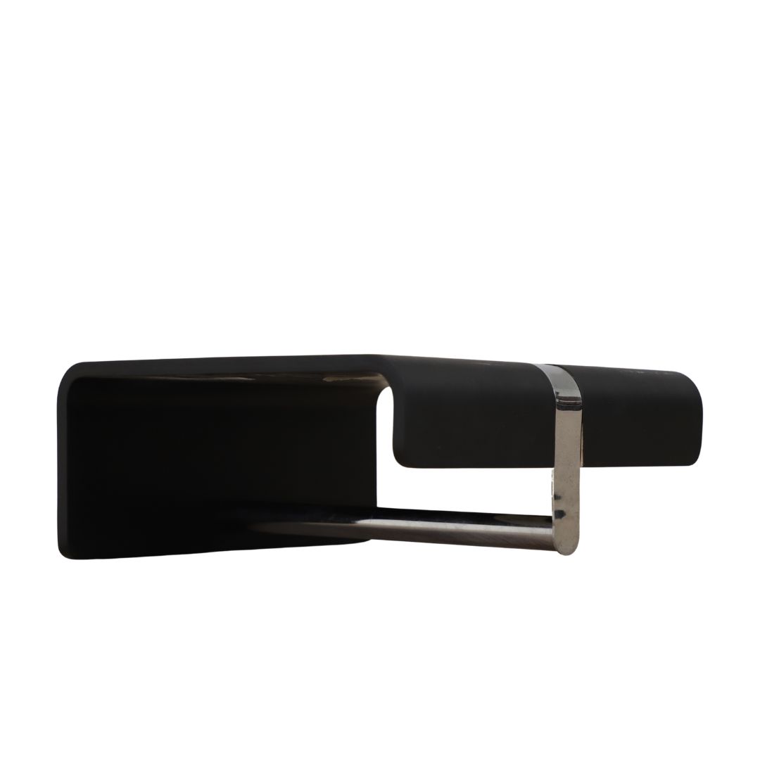 Denna stilrena klädhängare kombinerar funktion och design på ett tidlöst sätt. Basen är i svartlackerad trä som ger ett sobert och modernt uttryck, medan de kromade detaljerna tillför en elegant och exklusiv känsla.
