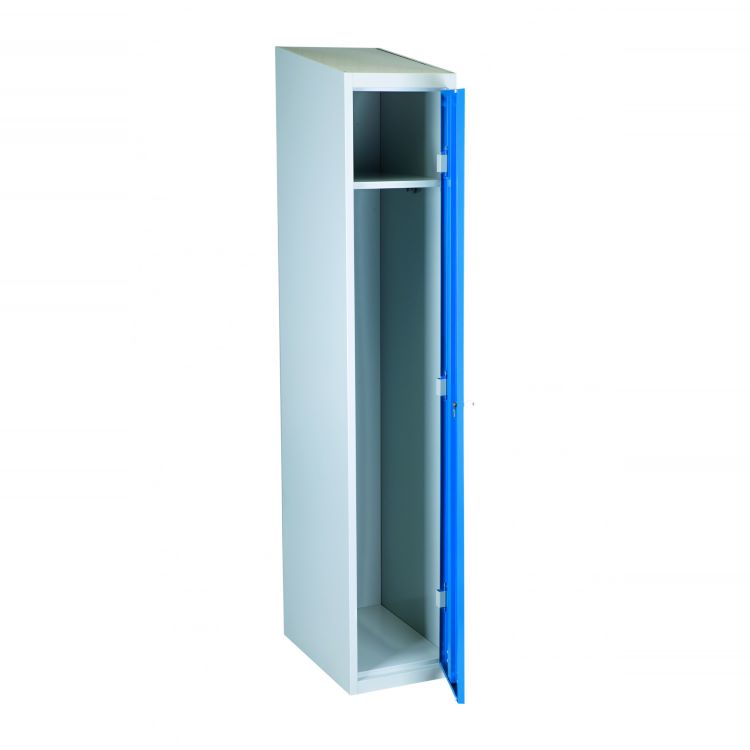 Klädskåpet är ett klassiskt val för personlig förvaring, ett stilrent och funktionellt skåp som passar lika bra i omklädningsrummet som i hallen eller längs korridoren. Med sina kulörta blåa eller röda dörrar ger det ett välkomnande och färgstarkt intryck i alla miljöer. Klädskåpet är pulverlackerat med grå stomme och kulört dörr, vilket ger den dess goda hållbarhet.