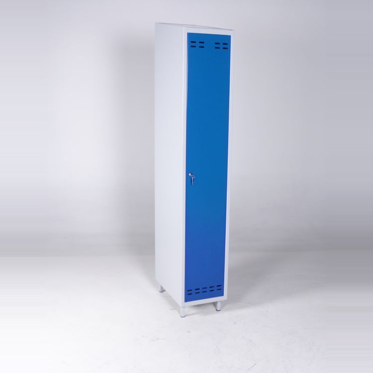 Skåpet är välventilerat med dubbla ventilationsgaller, utrustat med cylinderlås för trygg förvaring och sluttande tak som underlättar rengöring. Tack vare en innovativ konstruktion monteras klädskåpet enkelt utan skruvar eller verktyg – perfekt för snabb installation.