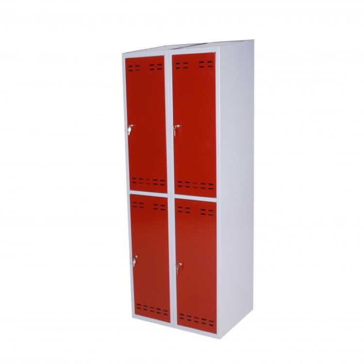 Skåpet är välventilerat med dubbla ventilationsgaller, utrustat med cylinderlås för trygg förvaring och sluttande tak som underlättar rengöring. Tack vare en innovativ konstruktion monteras klädskåpet enkelt utan skruvar eller verktyg – perfekt för snabb installation.