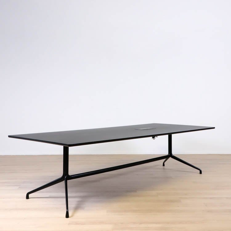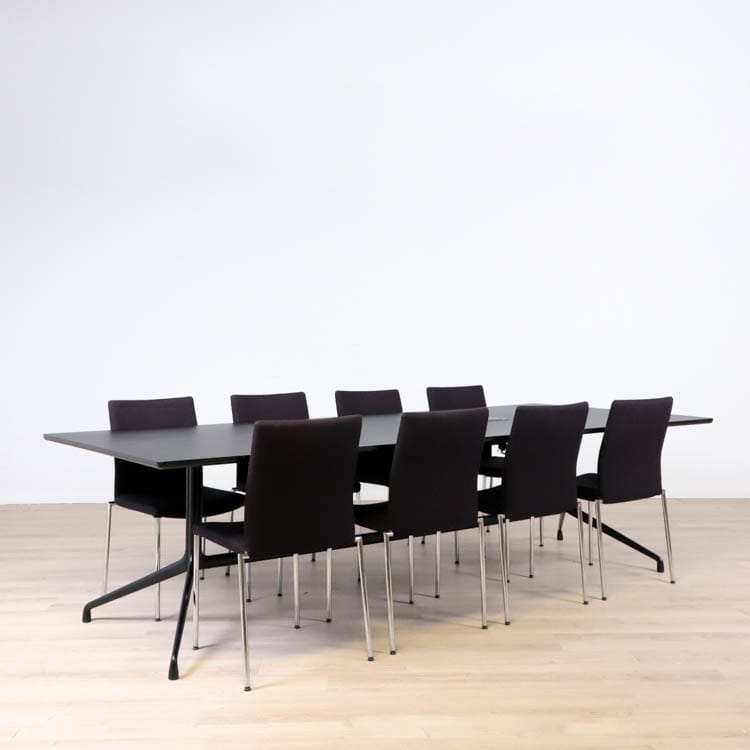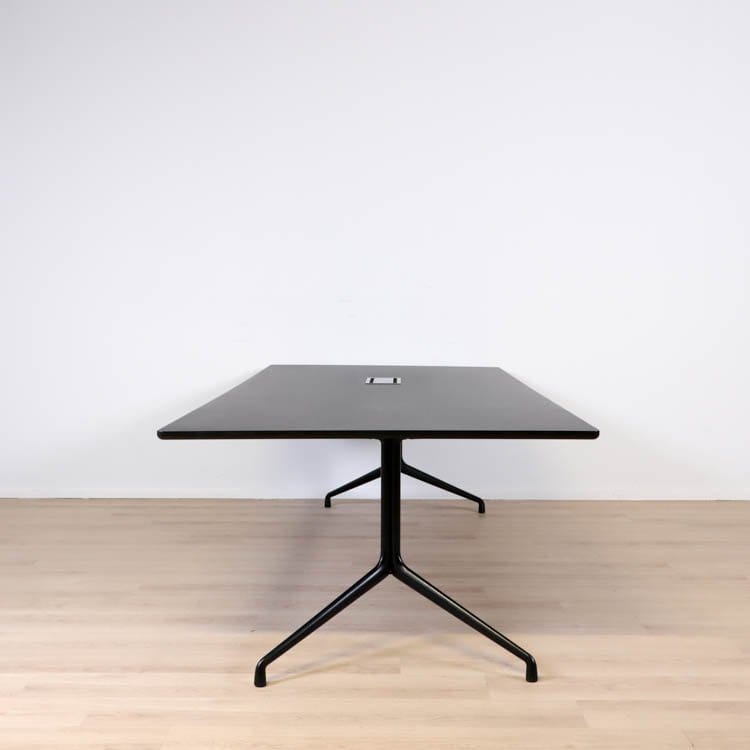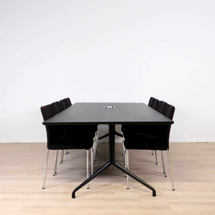 About A Table delar den allmänna mångsidigheten och designspråket som resten av familjen. Bordet har samma pulverlackerade ram som många av stolarna i serien, och de organiska kurvorna och de upphöjda fötterna förmedlar en liknande lätt uttryck. Detta bord är rymligt vilket gör den idealisk att använda som mötesbord där sociala samspel får ta plats. Den rektangulära skivan har sina ben placerade i båda ändar och har en korsstångkonstruktion. Tack vare det så blir också bordet stadigt och hållbart. Så samla dina kollegor kring About A Table och upplev en trevlig sittning.