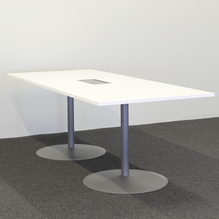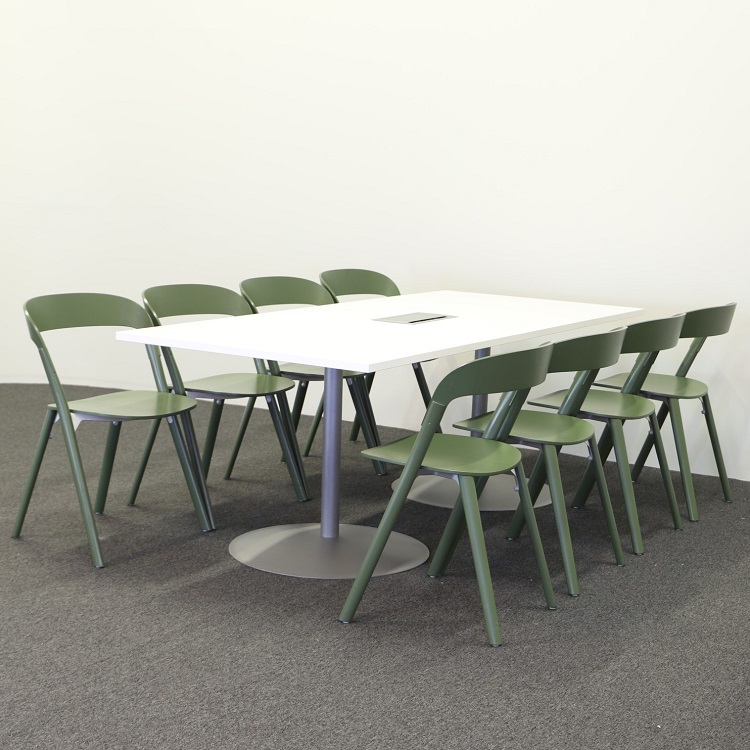 Chat är ett pelarbord skapat för kommunikation, informella möten och trevligt småprat. Bordet består av två rejäla pelarstativ som lyfter upp den vita bordsskivan som ger plats för 6-8 personer. Chat från EFG är ett kvalitativt och hållbart bord som står stadigt i flera år framöver. I mitten av bordet finns en kabellucka vilket ger en renare och mer strukturerad arbetsyta.