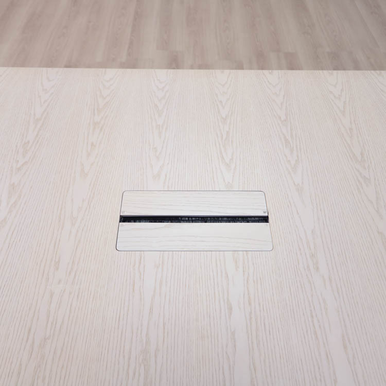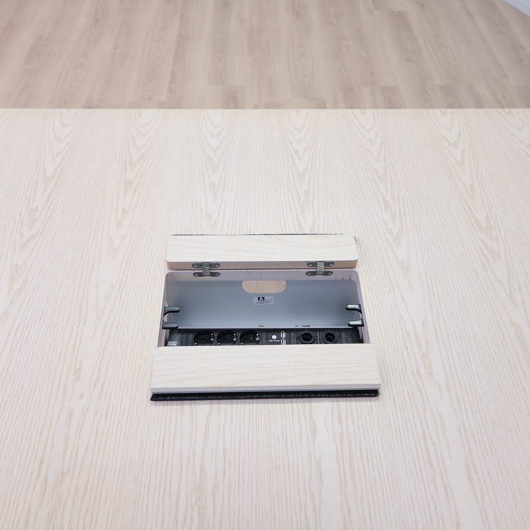 Bordet är utformat med kabelbox och eluttag för enkel hantering av elektrisk utrustning.
