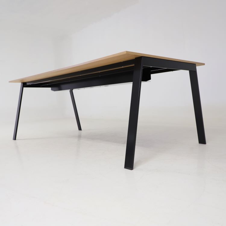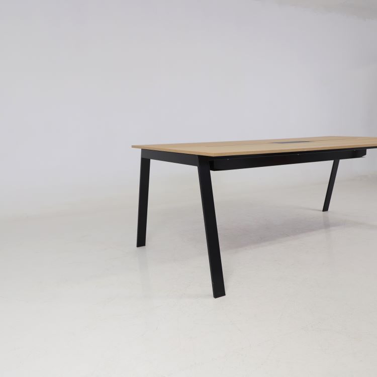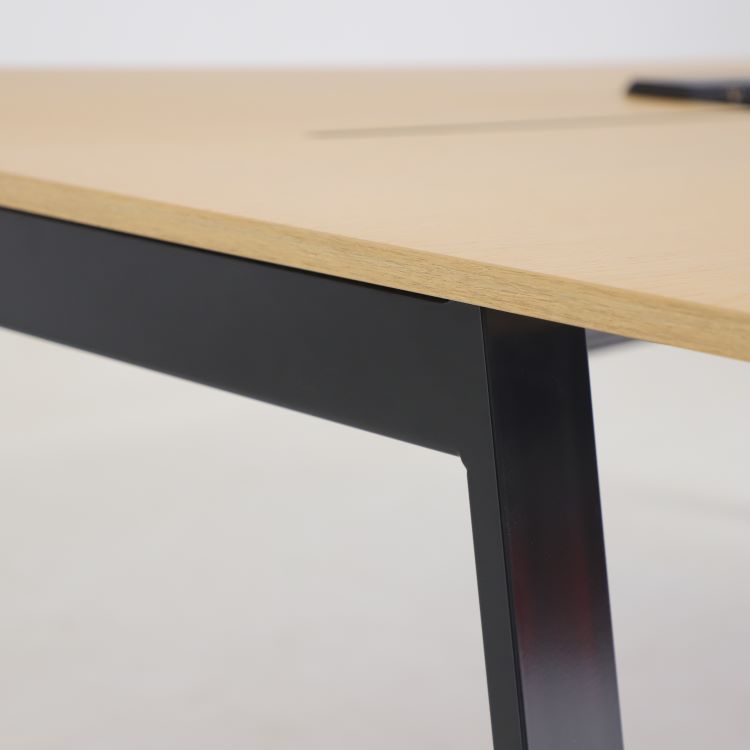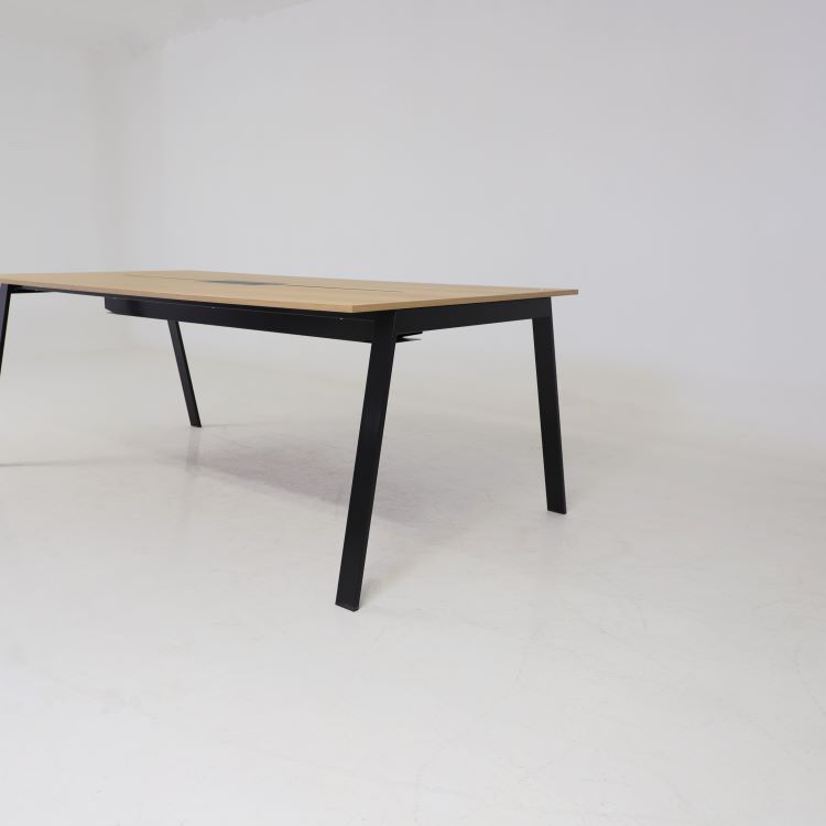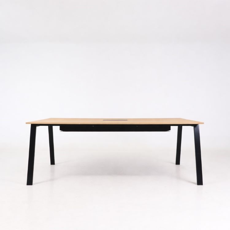 Kombinationen av genomtänkt design, robust konstruktion och smarta funktioner gör Piece till ett praktiskt och stilrent val för professionella arbetsmiljöer. Bordet kommer är med en bordsskiva i träfinish som ger rummet ett varmt och inbjudande uttryck, tillsammans med sitt stabila underrede i svart metall som skapar en snygg kontrast.