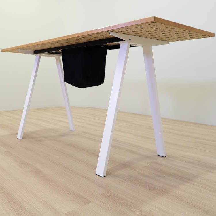 Bordets yta, som kommer från Lg Collection, är noggrant utvald för att ge en hållbar och estetiskt tilltalande arbetsyta. Den svarta kabelkorgen i tyg integrerad i bordet bidrar till att organisera och dölja kablar, vilket skapar en snygg och prydlig arbetsmiljö.