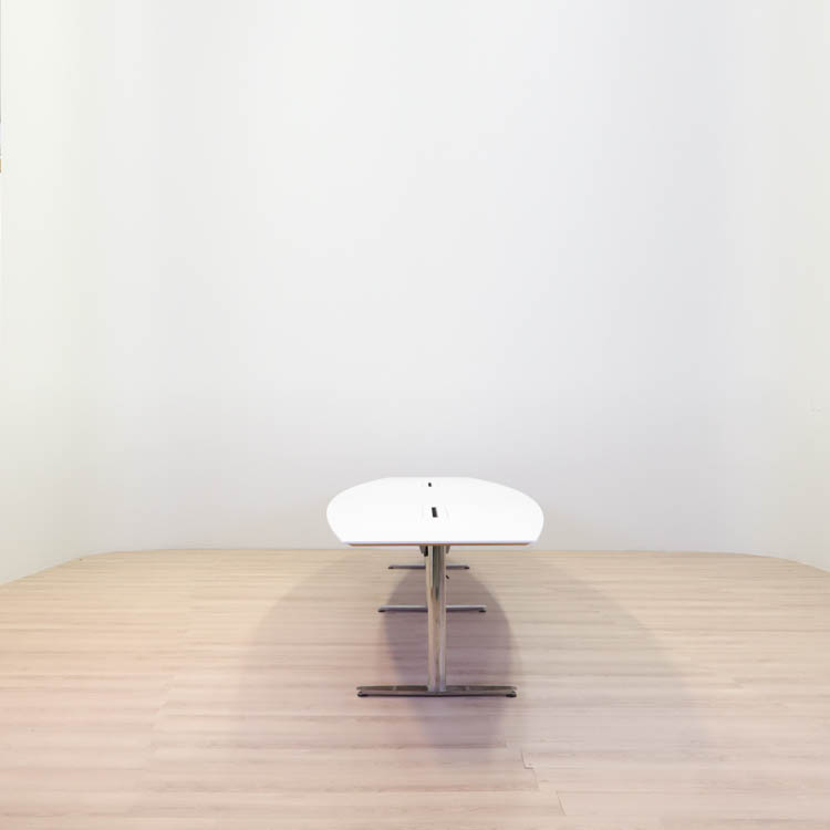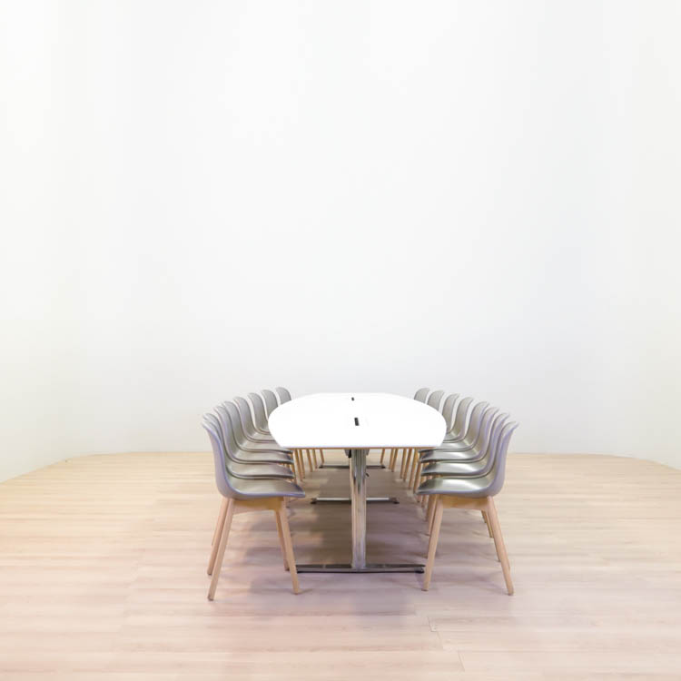 Det här är ett klassiskt konferensbord där man får plats med många medarbetare kring. Den välvda båtformen gör att det blir lättare att se alla som sitter runt bordet vilket skapar en känsla av gemenskap.