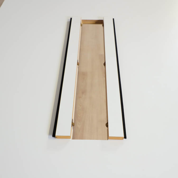 Bordet kommer i två storlekar 280 cm eller 400 cm, det större alternativet är 2-delat med tre ben.