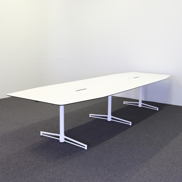 Konferensbord med stativ T-bone & bordsskiva Discus i båtformat format från Johanson Design.