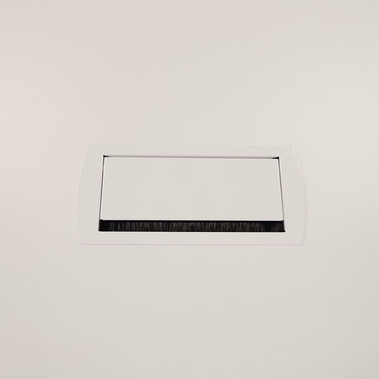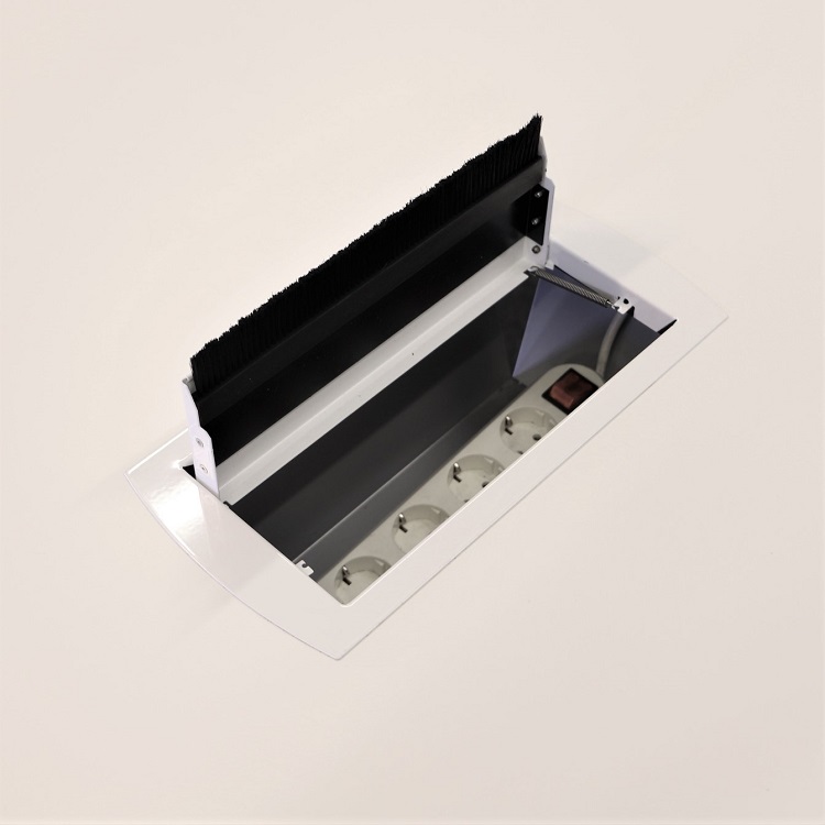 Konferensbordet har runda hål om några centimeter vid kabelluckan, se bilder i bildspelet.