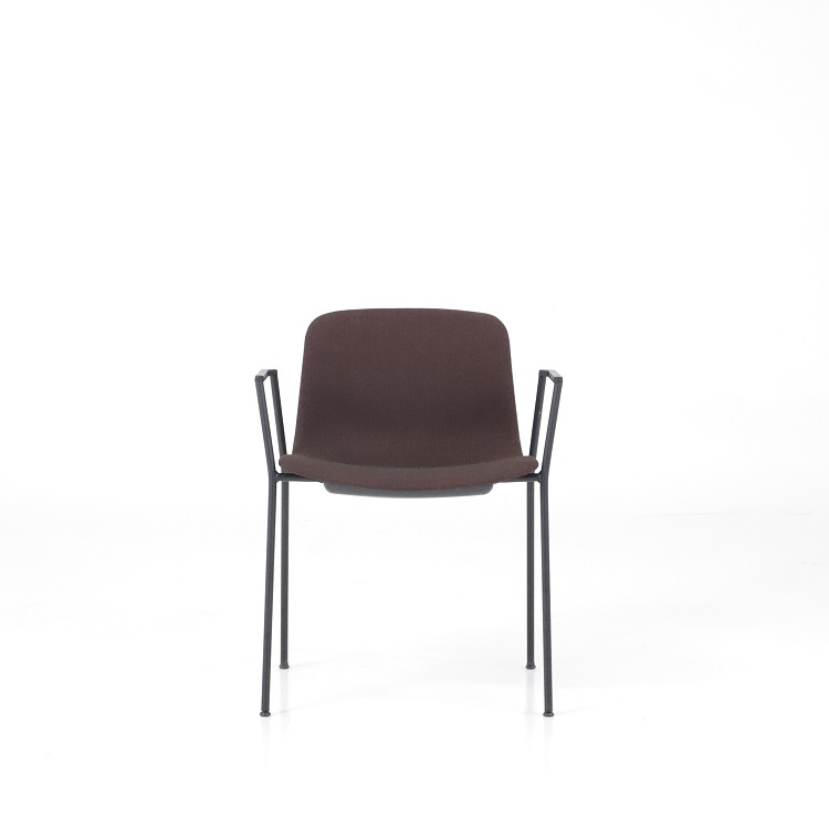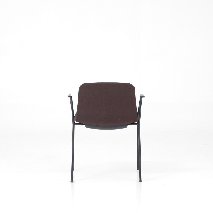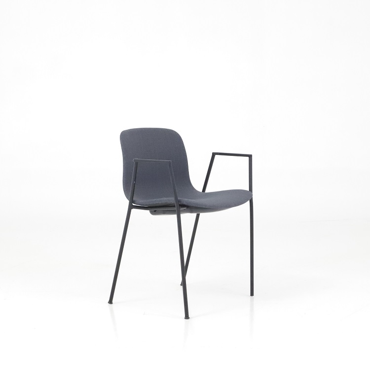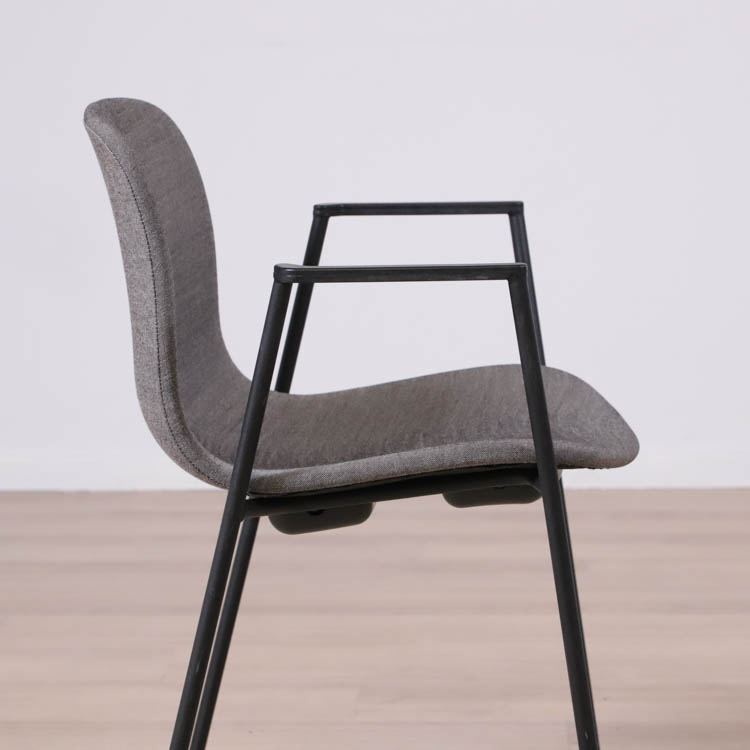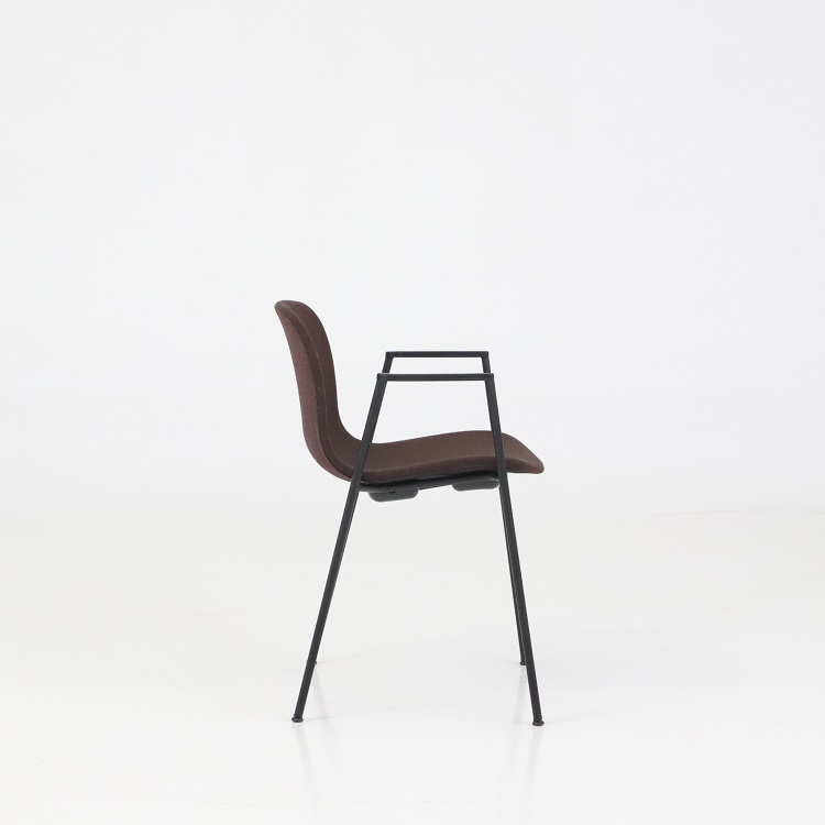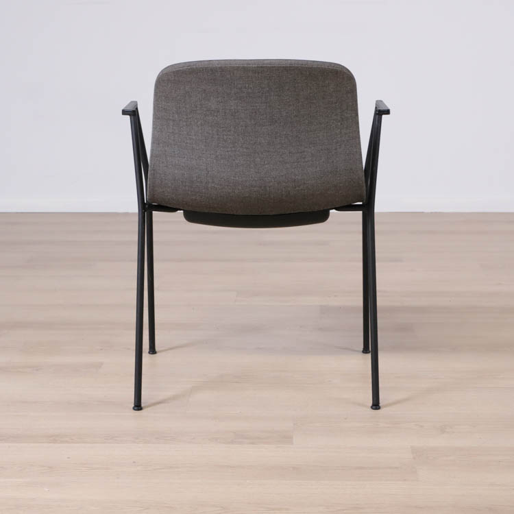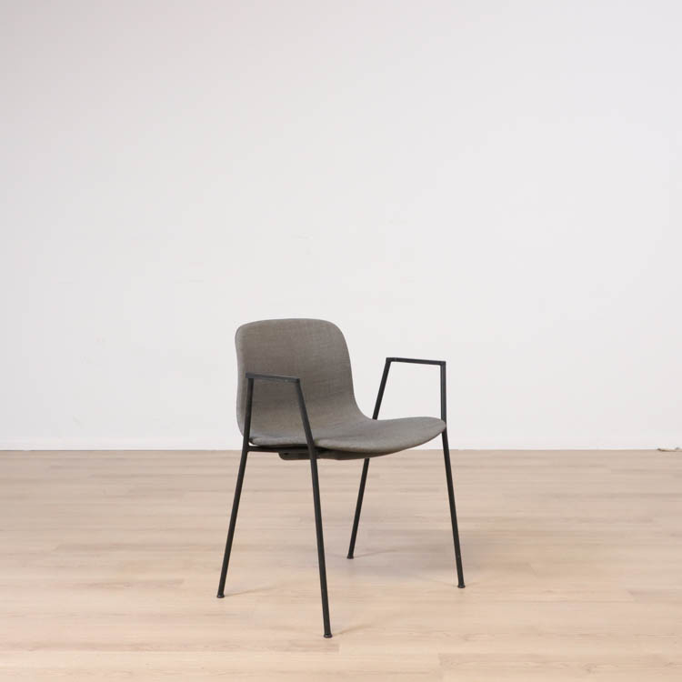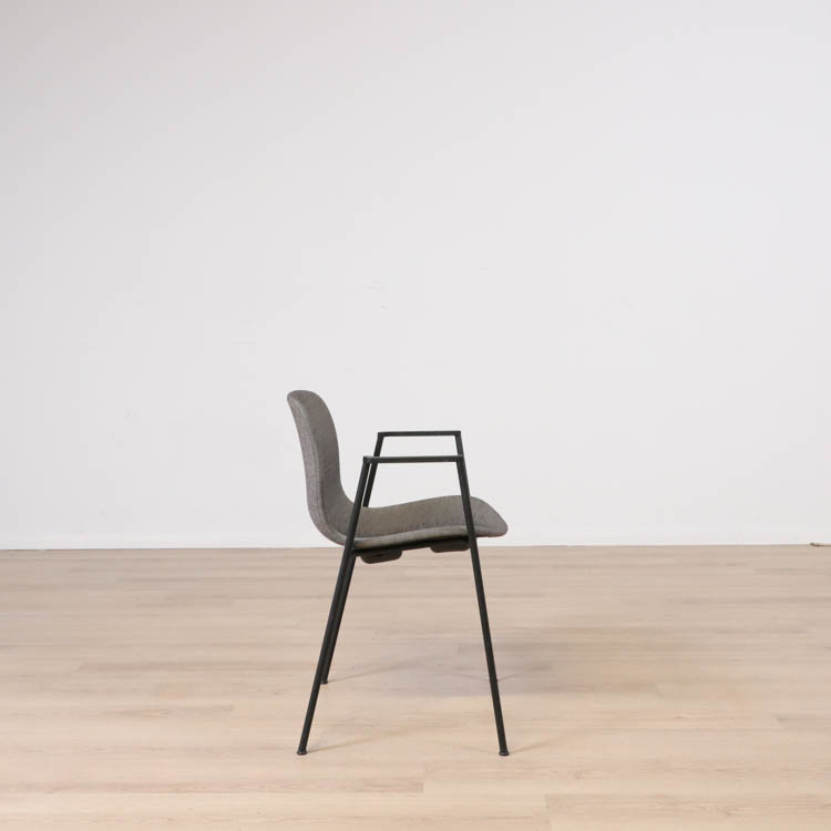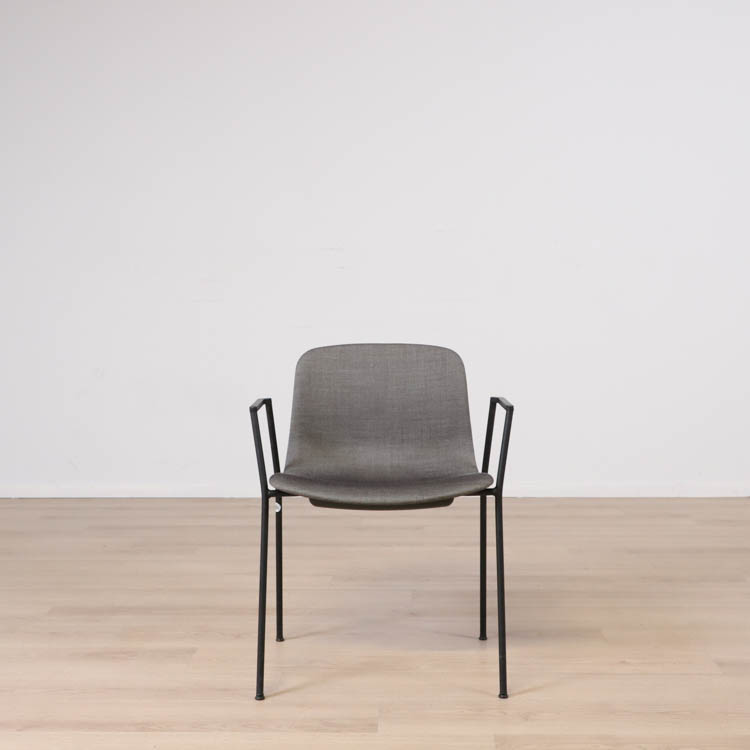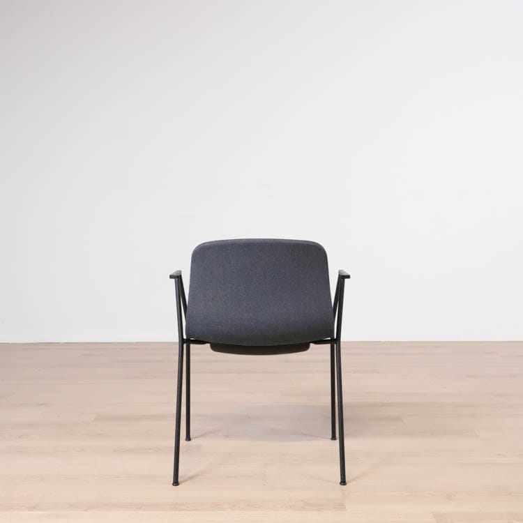 Konferensstolen AAC19 från HAY är en helklädd stol med stoppas sits och rygg för ökad komfort. About a Chair 19 har lätt svängd sits och rygg för att följa kroppens naturliga kurva som tillsammans med armstöden minskar belastningen på kroppen. Med sina smala, eleganta ben och armstöd ramas den mörkt grå klädda sitsen på ett modernt sätt. Den raffinerade siluetten gör stolen till en blickfångare trots sina diskreta kulörer.