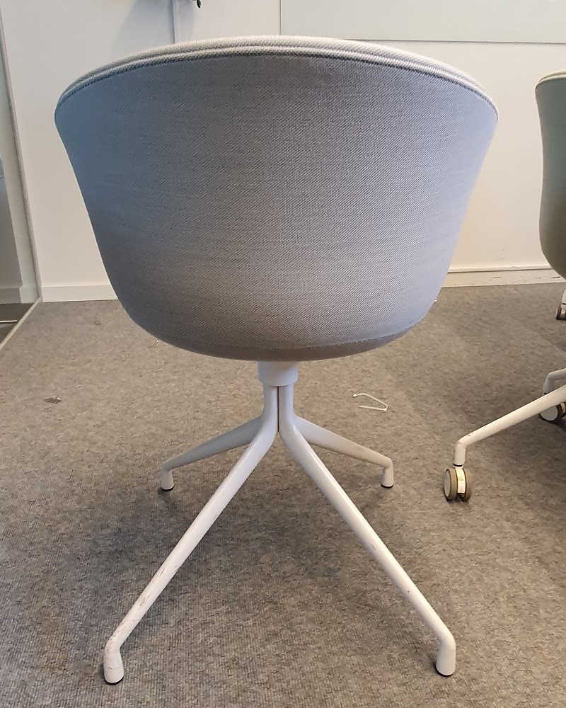 Konferensstolen About a Chair har en karaktäristisk rundad rygg och armstöd som ger stolen ett välkomnande intryck. En mycket elegant stol med mjuka, stilrena linjer. Modellen About a Chair kommer från det danska varumärket HAY och är designad av Hee Welling. Tanken bakom designen var att göra en stol med ovanligt enkel design som passar i princip var som helst, vilket Hee verkligen lyckats med. En bekväm, snurrbar stol på hjul med ett vitt fint stativ och ljusgrön klädsel som ger en jordnära färgklick till rummet.