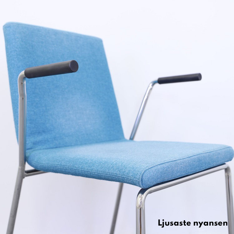 Denna stol finns i tre olika blå nyanser, välj önskad nyans nedan. Den mörkaste och den mellersta nyansen är snarlika varandra med en minimal skillnad. Alla tre nyanser passar bra ihop