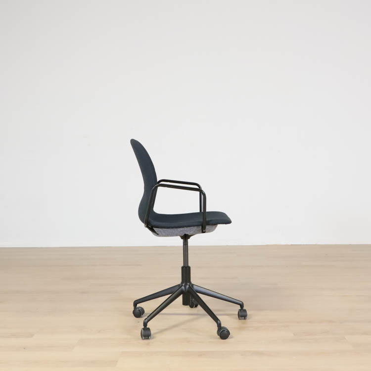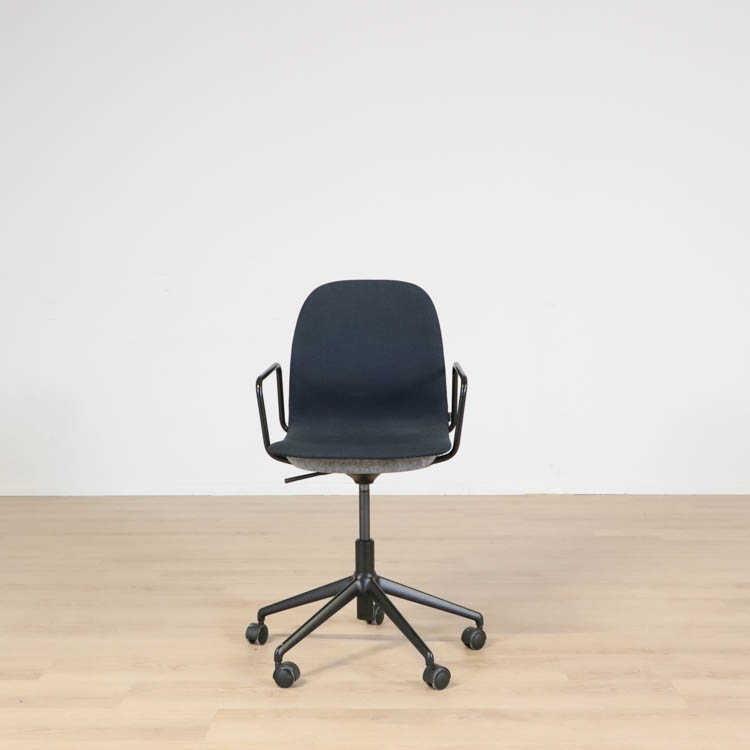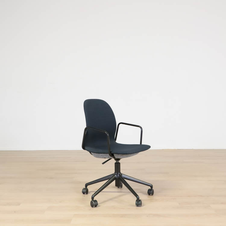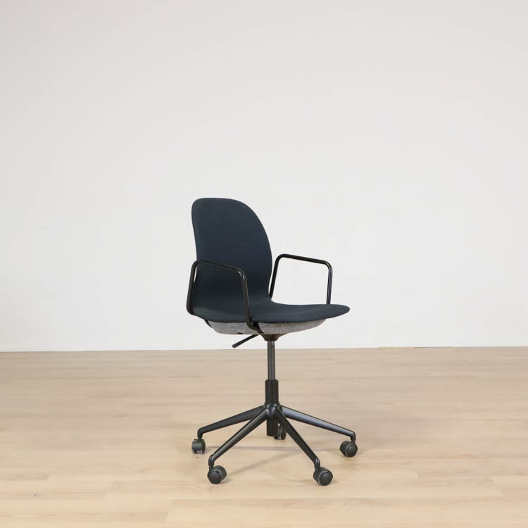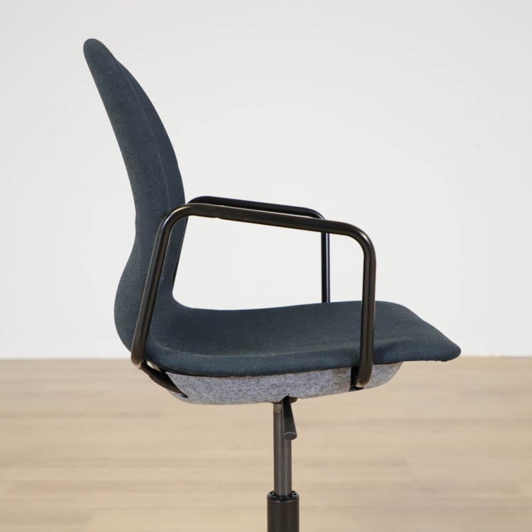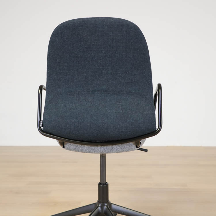 Archie är en konferensstol med mjuka former som enastående möter ryggens krökning och ger dig en bekväm stol perfekt för mötet eller konferensen. Klädd i ett mörktblått tyg i en vävd struktur och ben i svart kulör på 5-kryssfot med hjul. Archie har även armstöd i polerad aluminium vilket ger en bekväm och avslappnad sittning under längre möten.