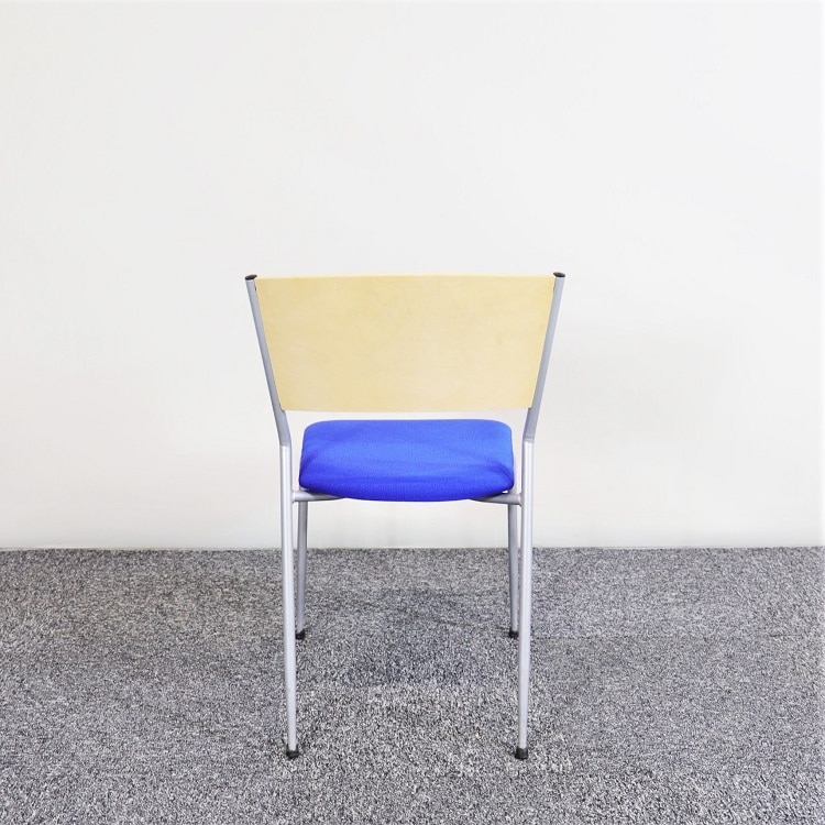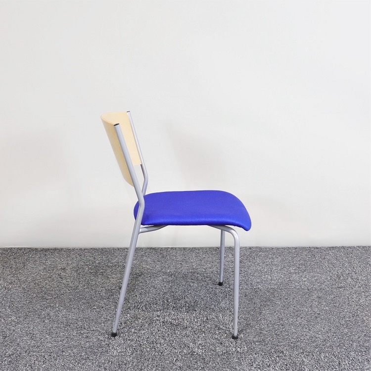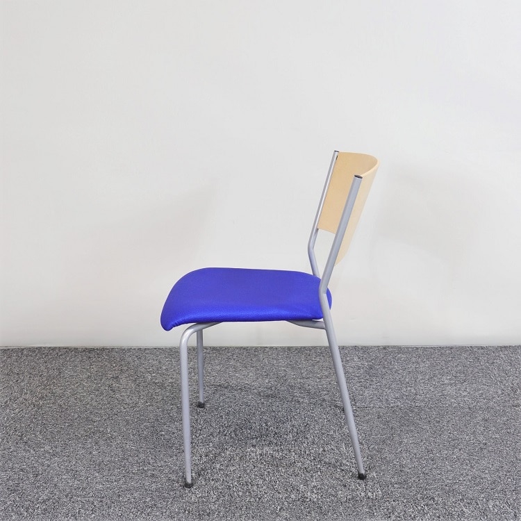 En enkel och bekväm stol som ger en härlig färgklick i rummet den ställs tack vare sin intensivt blåa sits. Ryggstödet i laminat med björkfaner har en enkel rundning som förhöjer komforten tillsammans med den lätt stoppade sitsen. Ben i pulerlackerad metall är enkla att hålla rena och ger en mycket praktiskt mötes- och konferensstol.