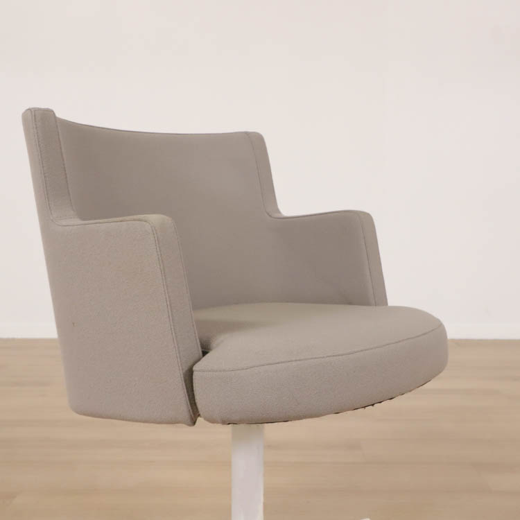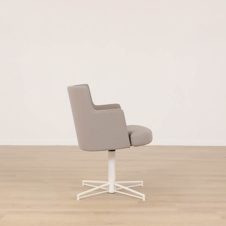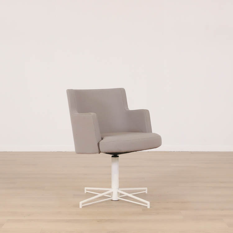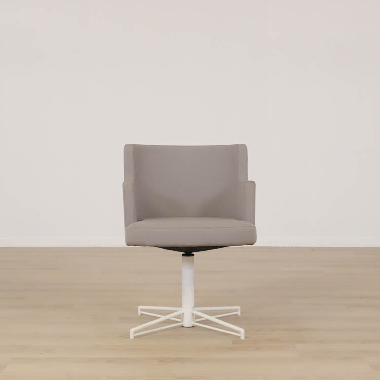 En smidig konferensstol som genom sin effektiva utformning och rena form gör att den passar väl i de flesta utrymmen, såväl i loungen som entrén eller vid mötet. Den är dessutom bekväm med sin stoppade sits och rygg med armstöd, samt att den är roterbar. Klädd i stilren grå/beige textil och ben i vit utförande.