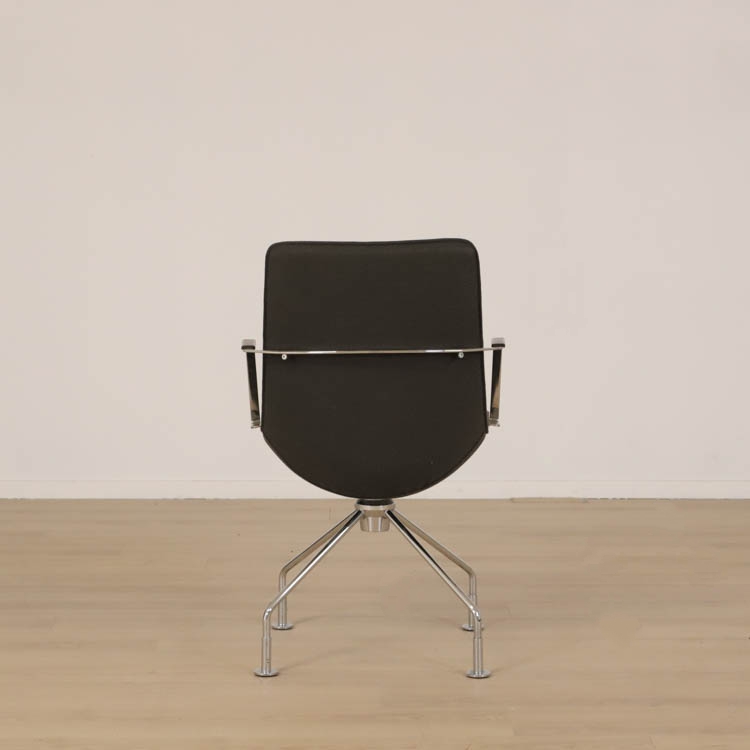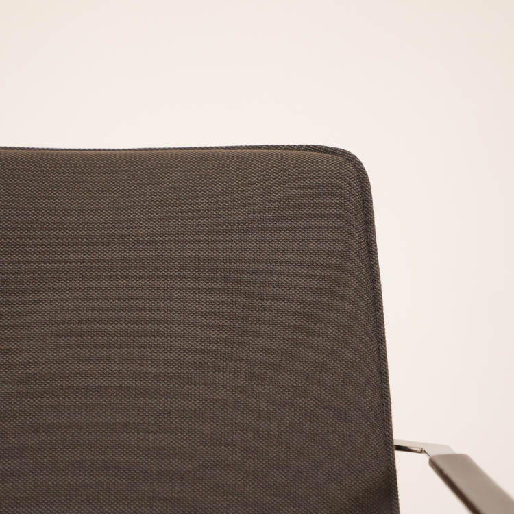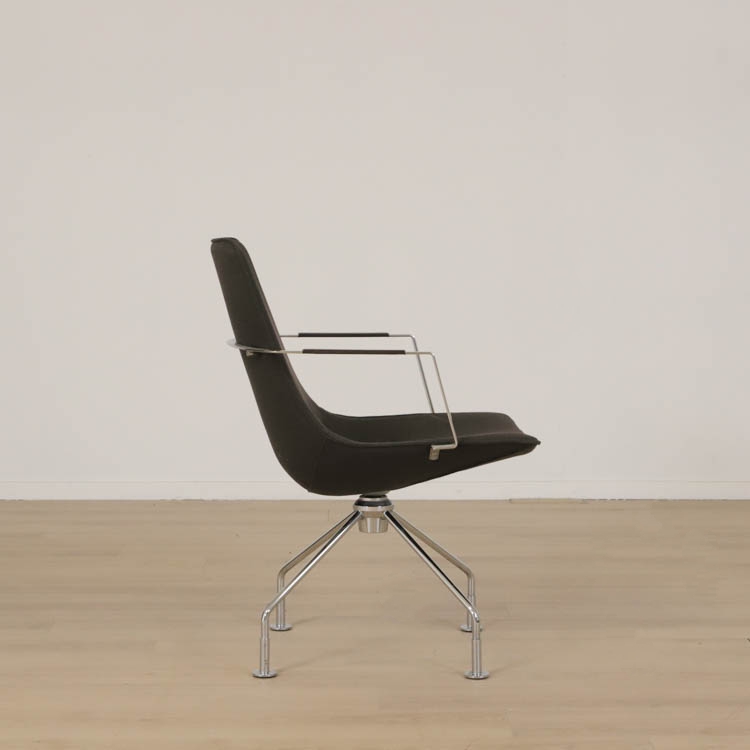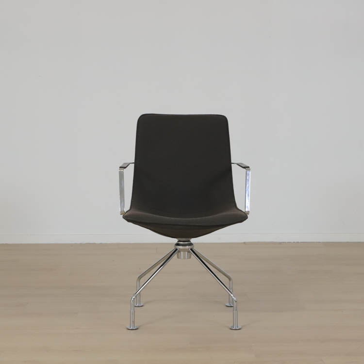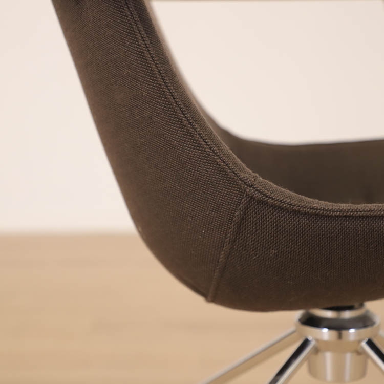 Comet från Lammhults har en skulptural form med god kvalitét och5300 komfort. Sitsen är klädd i brunt tyg, vilket ger en varm och sofistikerad känsla, medan de smala metallarmstöden och den kromade fyrbenta snurrfoten ger ett elegant och lätt uttryck. Stolens ergonomiska utformning med en lätt lutande rygg och välvd sits gör den bekväm att sitta i under längre perioder, vilket gör den idealisk för både kontor, loungeytor, konferensrum och moderna hemmiljöer. Den tidlösa designen och de högkvalitativa materialen gör Comet till en hållbar och stilfull möbel som passar i många sammanhang.