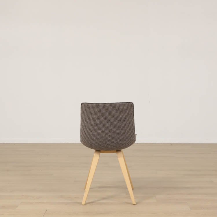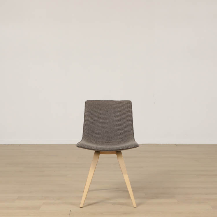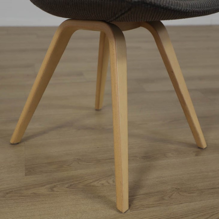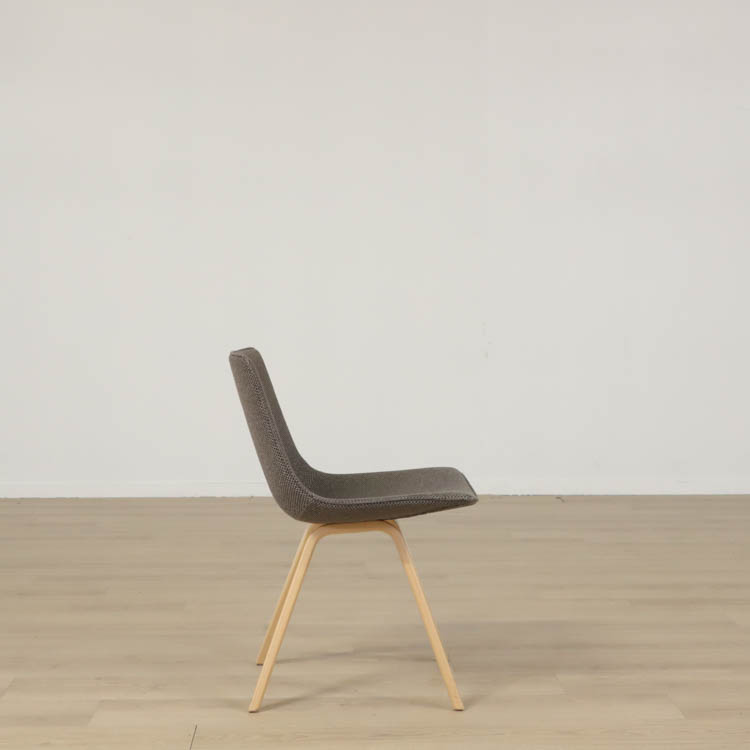 Stolen finns i två varianter: med träfärgade ben och med grå ben, vilket ger flexibilitet för att passa olika inredningsstilar. Benen är stabila och vinklade, vilket bidrar till stolens moderna estetik och funktionalitet. Den är ett perfekt val för både hem- och kontorsmiljöer, där den kan användas som en stilfull matsalsstol eller konferensstol.