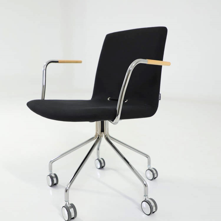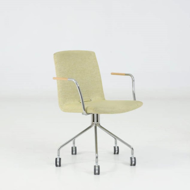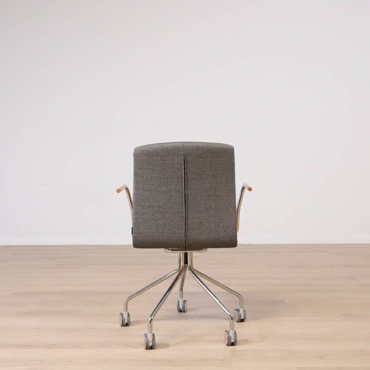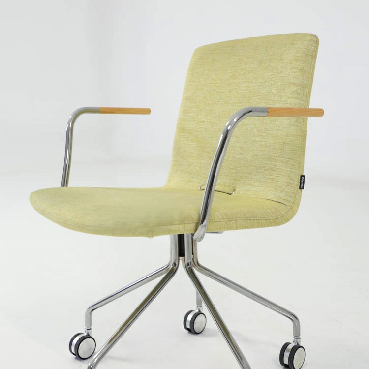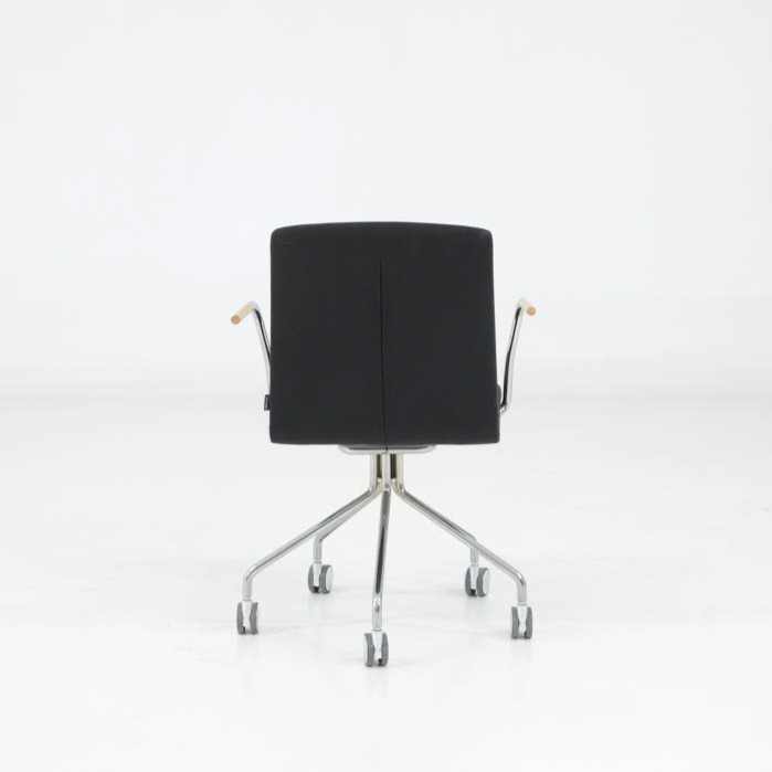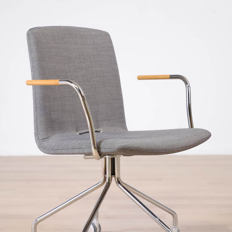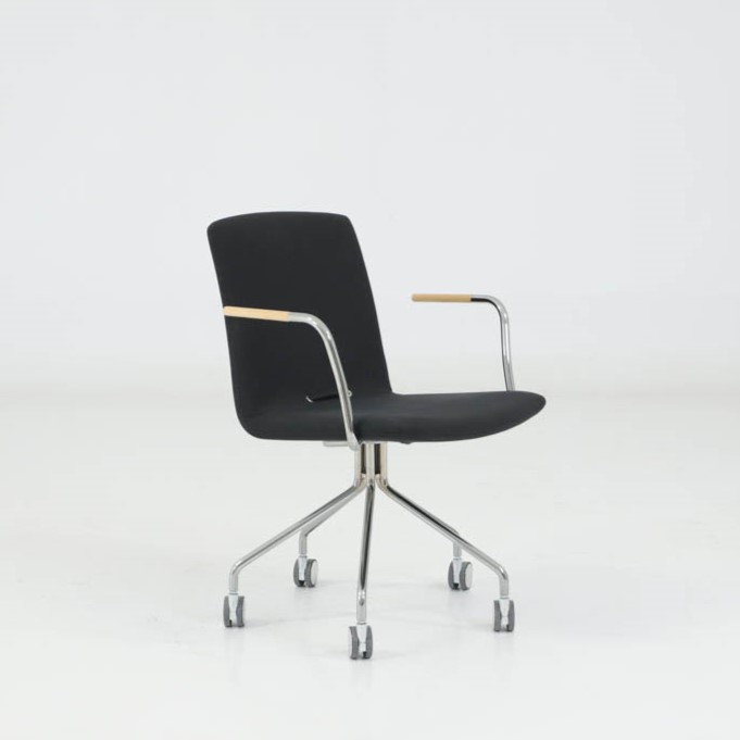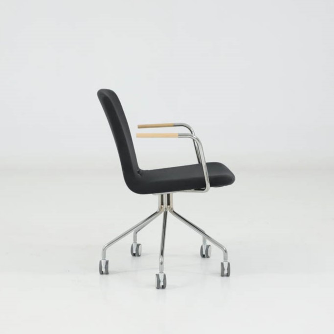 Konferensstolen Day från Gärsnäs är en stol med elegant och funktionsmässigt uttryck. Helklädd i tyg med detaljer som band i ryggen och träinslag på armstöd som ger en visuell harmoni att beskåda.