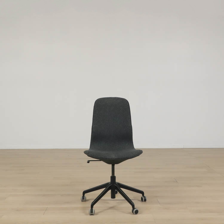 IKEA LÅNGFJÄLL med hög rygg är en ergonomisk och stilren konferensstol som kombinerar skandinavisk design med funktionalitet. Den höga ryggen ger extra stöd för rygg och axlar, medan den välvadderade sitsen och ryggstödet är klädda i slitstarkt och mjukt tyg för maximal komfort under långa arbetsdagar. Stolen har en smidig justeringsmekanism som gör det enkelt att anpassa höjd efter individuella behov, och den inbyggda gungfunktionen främjar rörelse och blodcirkulation. Det robusta underredet är utrustat med slitstarka hjul som rullar smidigt på olika golvytor, vilket gör stolen praktisk och flexibel. Detta är en konferensstol som förenar komfort, funktion och modern estetik på ett harmoniskt sätt.