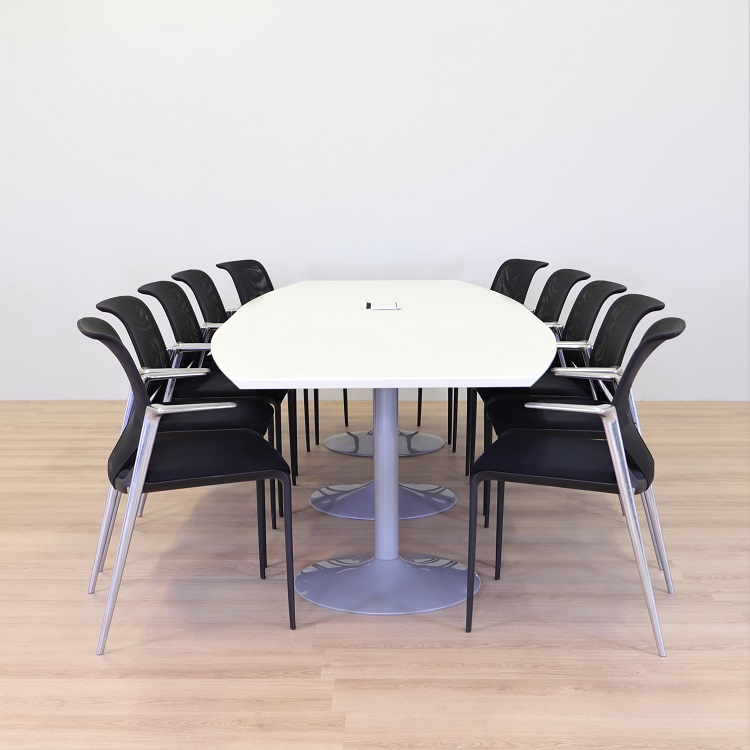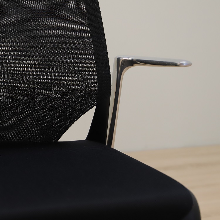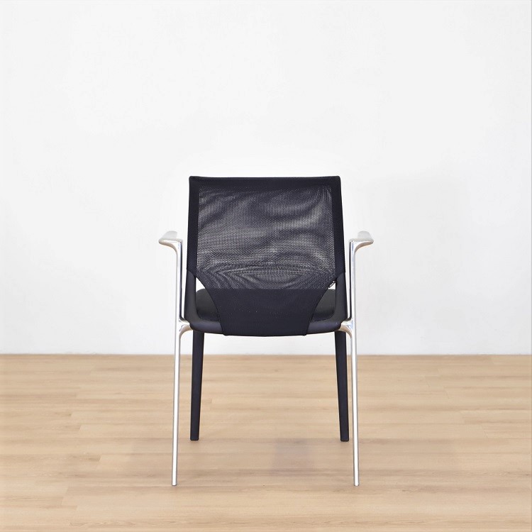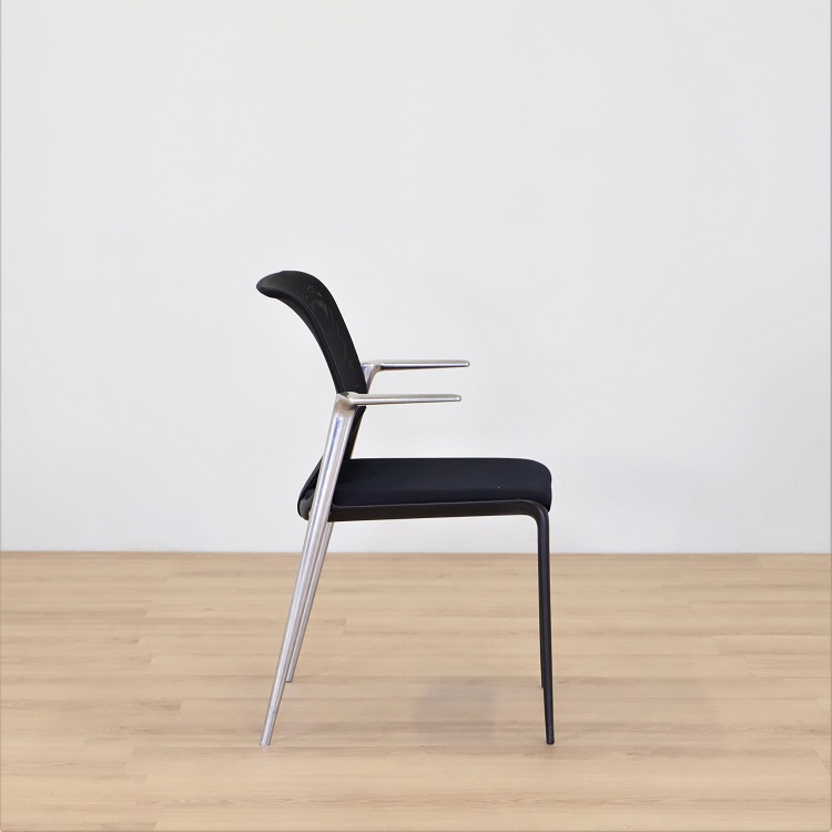 De bakre benen är i förkromat aluminium som stilrent binds samman med de kromade armstöden. Stolen har ett lätt svängd rygg för att följa kroppens naturliga kurva. Det flexibla tyget i ryggen ger optimalt stöd och komfort för alla användare. MedaSlim är dessutom stapelbar för att underlätta renhållning runt konferensbordet, eller när man behöver ha några extra konferensstolar till hands när antalet mötesdeltagare varierar.
