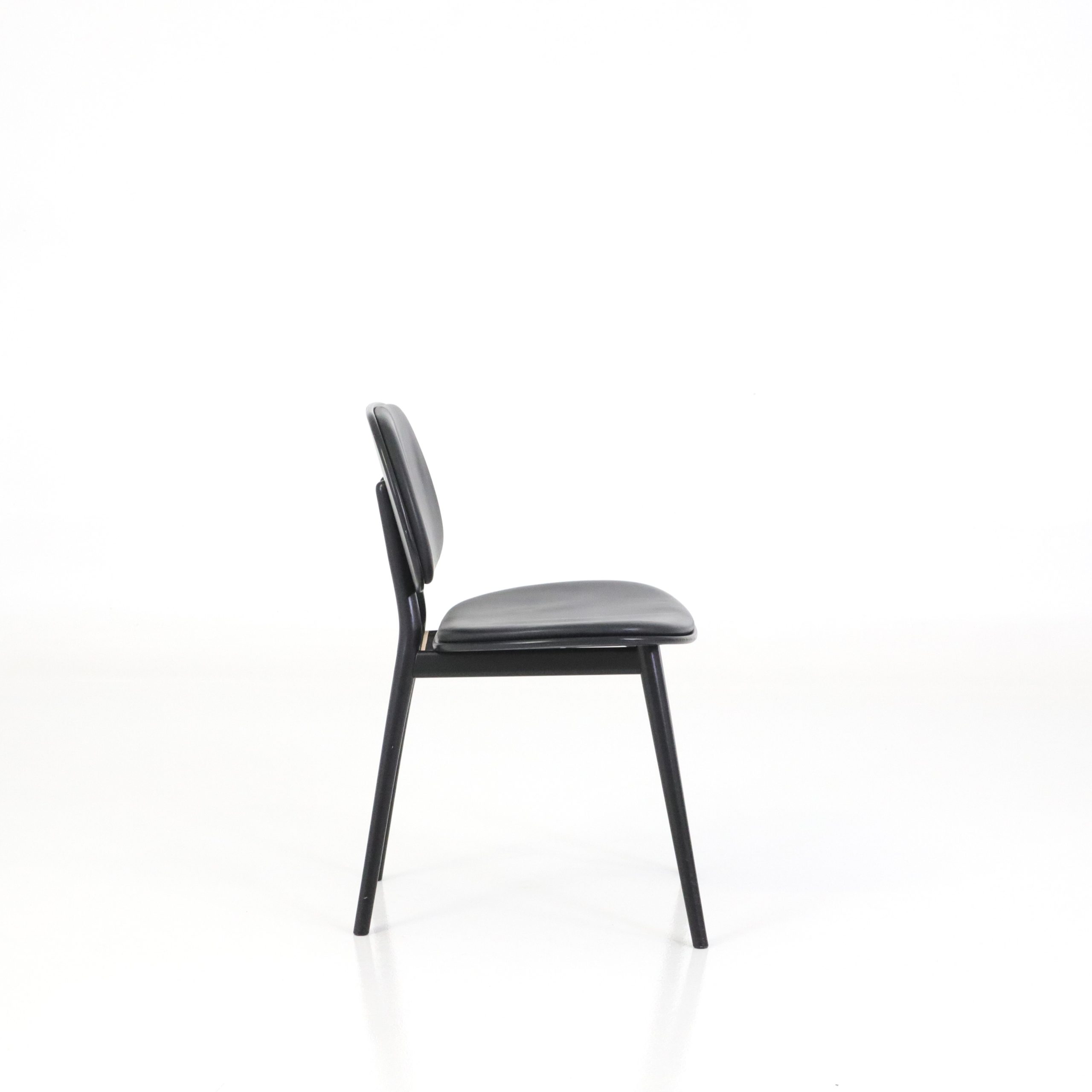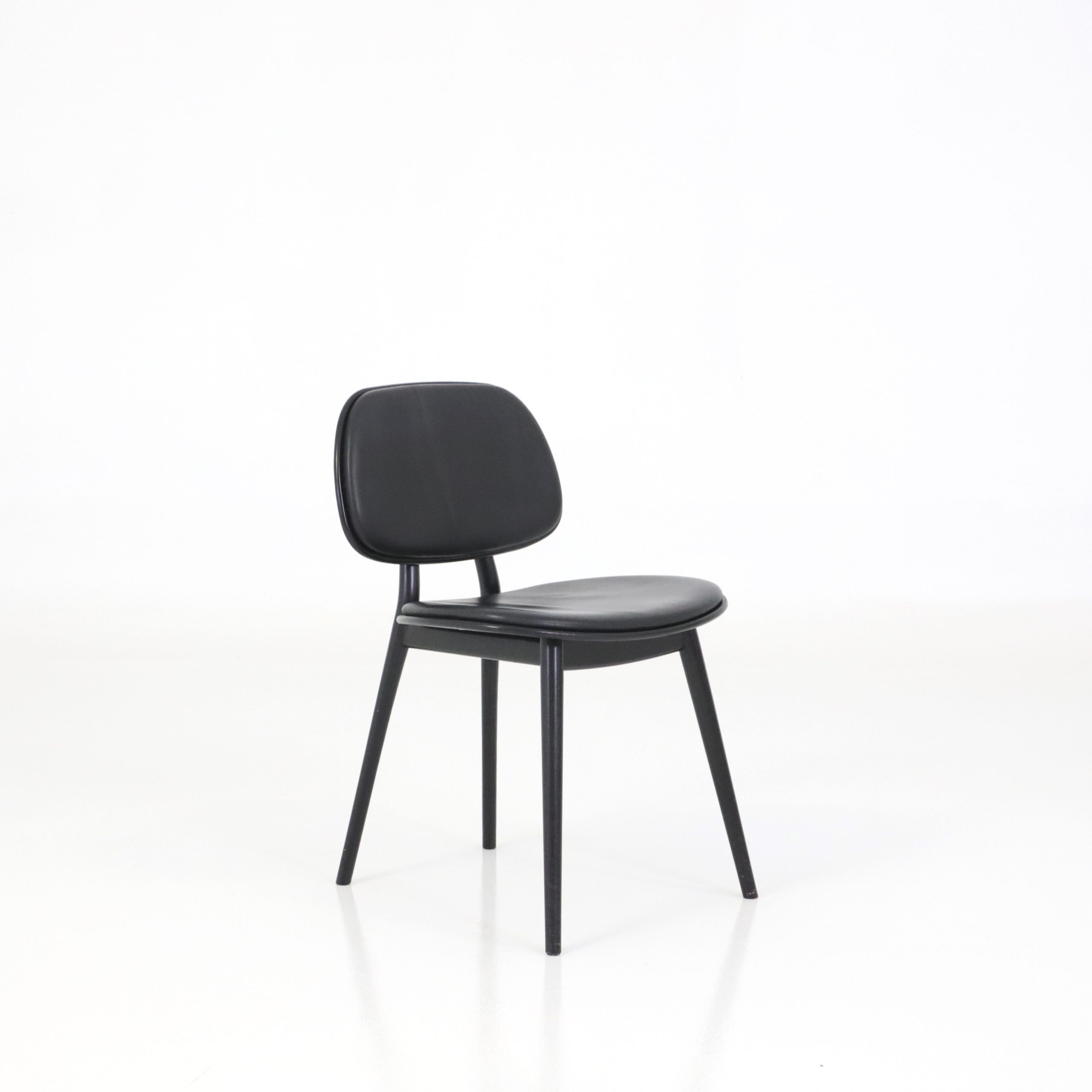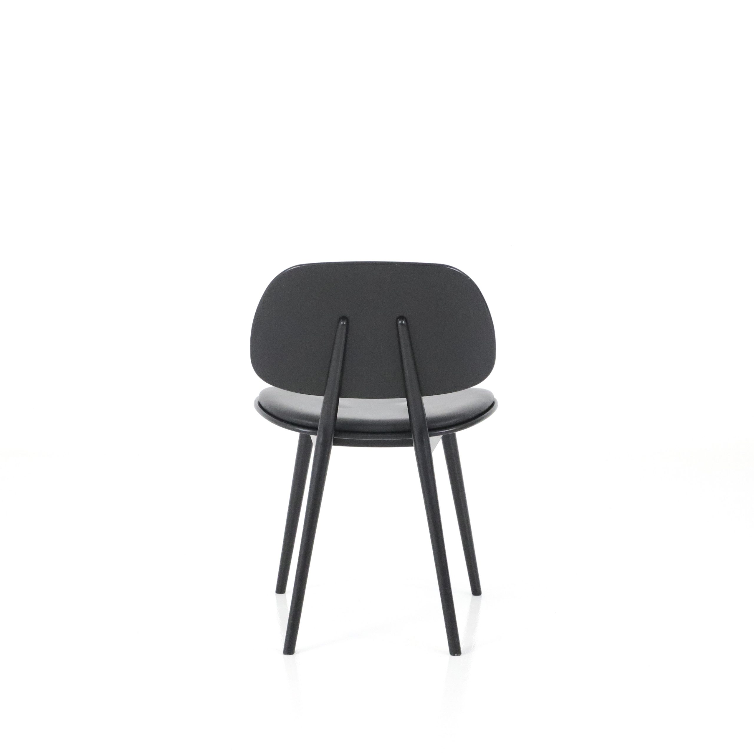 Konferensstol My Chair från STOLAB är en elegant stol designad av Space Copenhagen, där skandinavisk enkelhet möter tidlös exklusivitet. Den massiva björkramen är svartbetsad för ett stilrent och modernt uttryck, medan den klädda sitsen och ryggen i äkta Elmotique-läder ger hög komfort och en exklusiv känsla. Stolens mjuka linjer och omsorgsfulla proportioner gör att den passar lika bra vid matbordet i hemmet som i konferensrum, restauranger eller loungeytor.