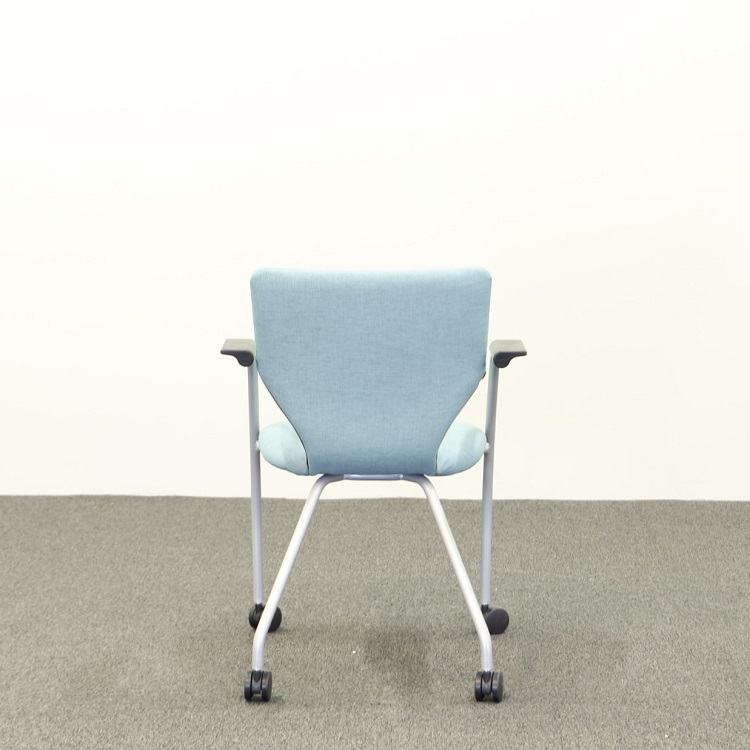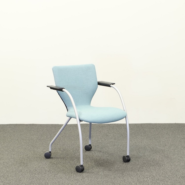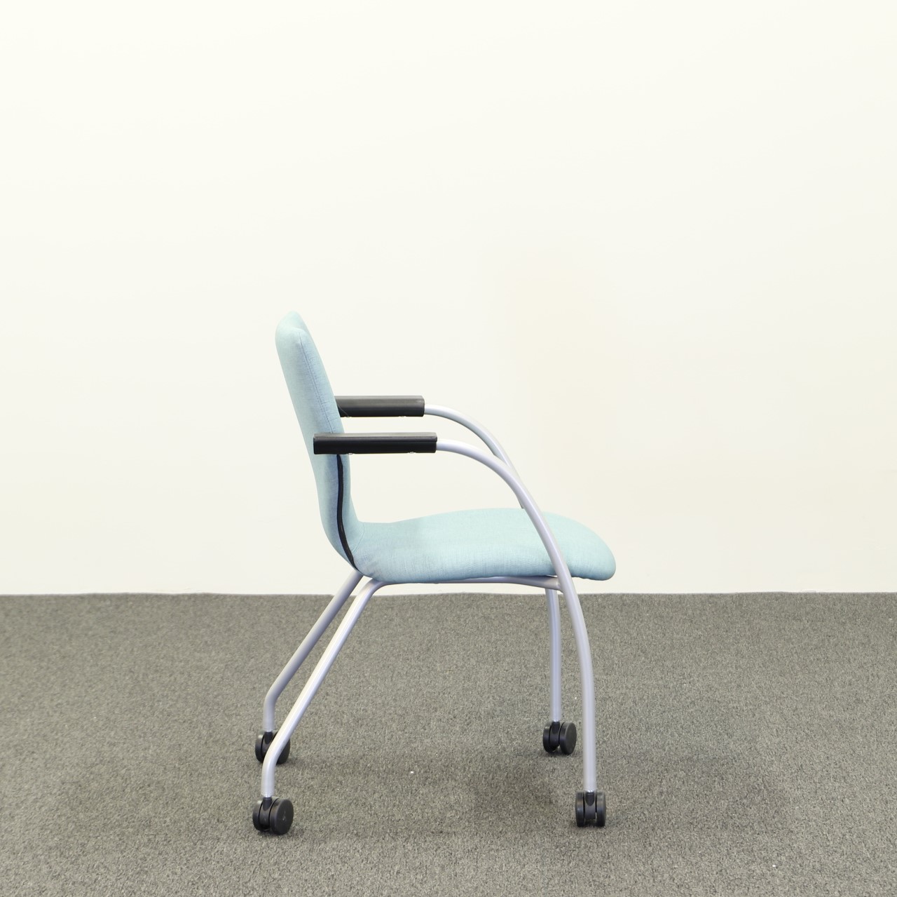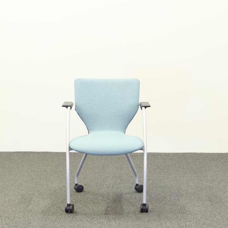 En praktisk konferensstol med härligt böljande former på hjul, vilket gör det enkelt att skjuta ut stolen från bordet utan att behöva lyfta stolen. Den ljusblå, fräscha kulören är perfekt för konferensrummet som behöver något som bryter av.