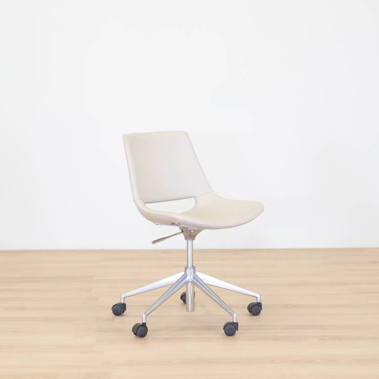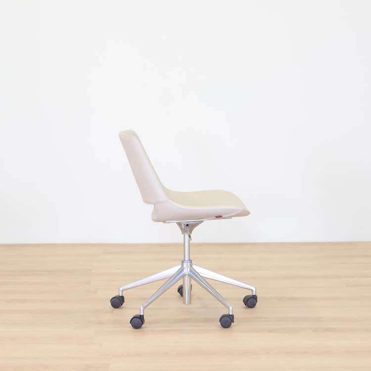 Kommer i en läderklädd beige kulör med kromad kryssfot på hjul.