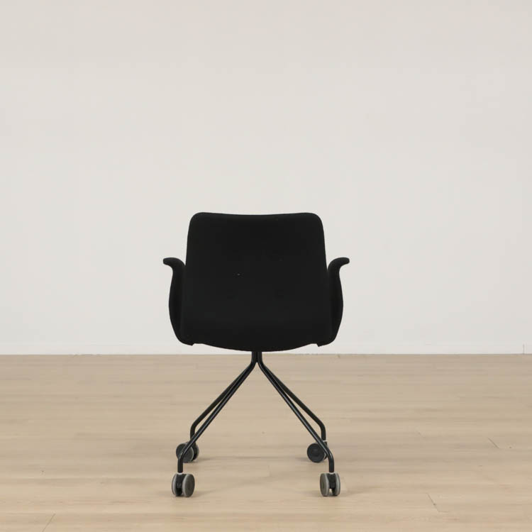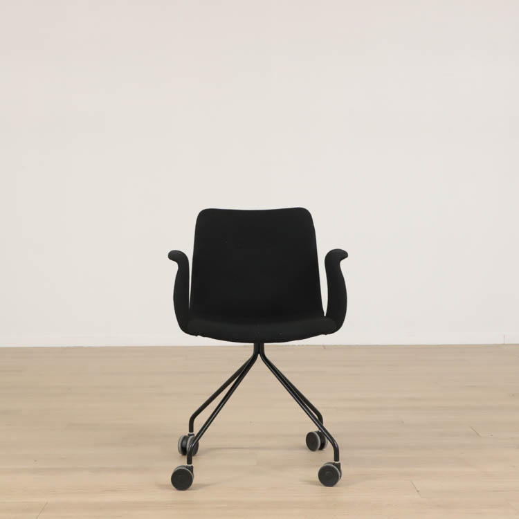 Konferensstolen Primum är ett exempel på klassisk dansk design. Detta är Bent Hansens första konferensstol, och namnet Primum kommer från det latinska ordet för “först”. Stolen är utrustad med ett tyg på baksidan som formar sig efter din rygg och ger ett optimalt stöd, oavsett kroppstyp. För att säkerställa hög slitstyrka, hållbarhet och säkerhet har stolen genomgått tester vid det danska tekniska institutet, vilket gör den perfekt anpassad för dagens behov inom konferens- och mötesrum. Primum passar både för privat användning och för offentliga miljöer som kontorsbyggnader eller restauranger. Detta utförande i filtliknande klädsel och svarta ben.